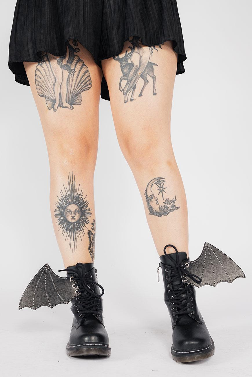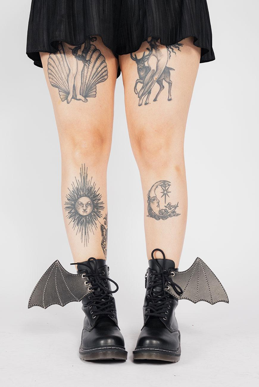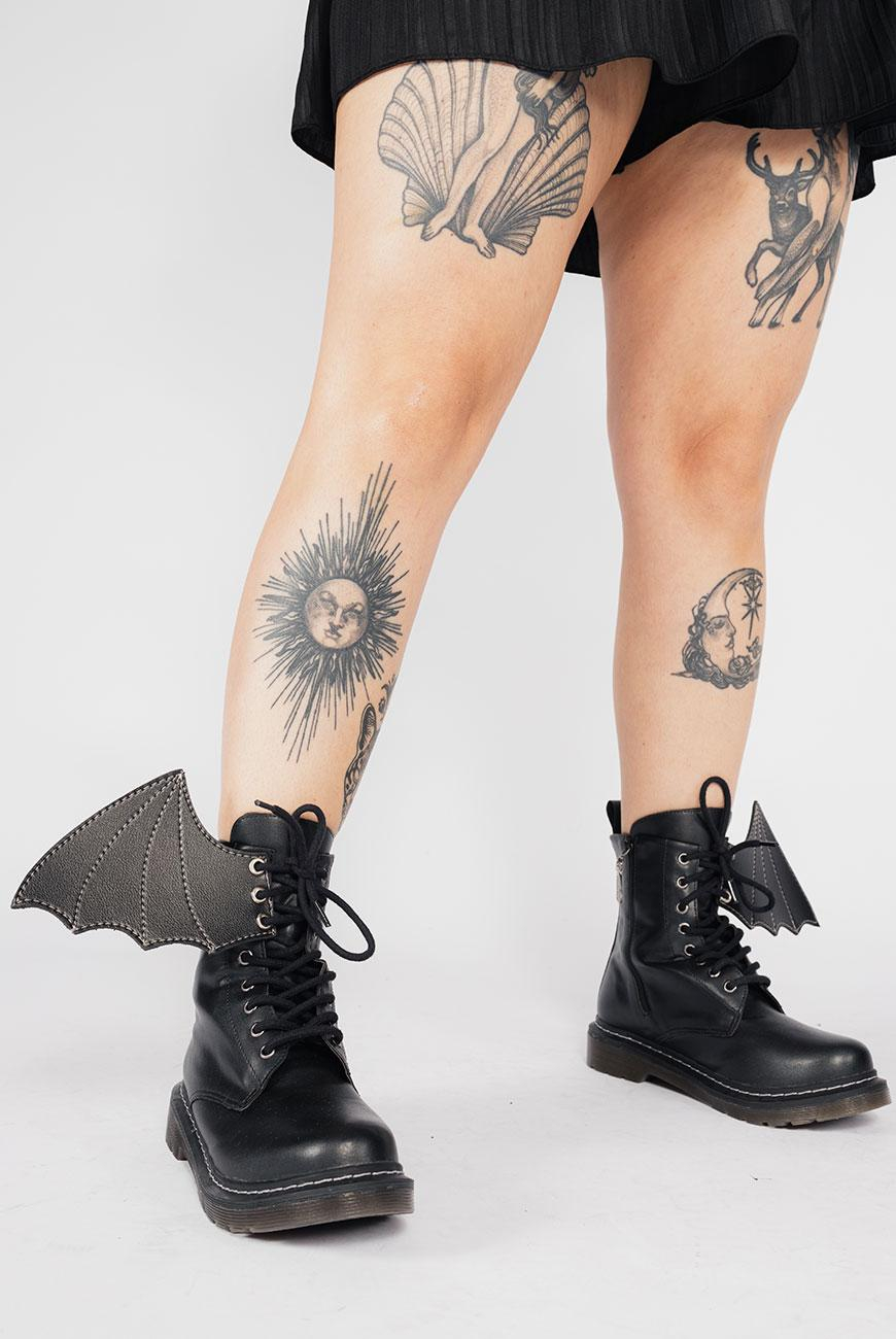 Asas confeccionadas em material sintético de origem não animal, com três ilhoses em banho níquel na lateral, possibilitando entrelaçar o acessório ao sapato pelos cadarços.