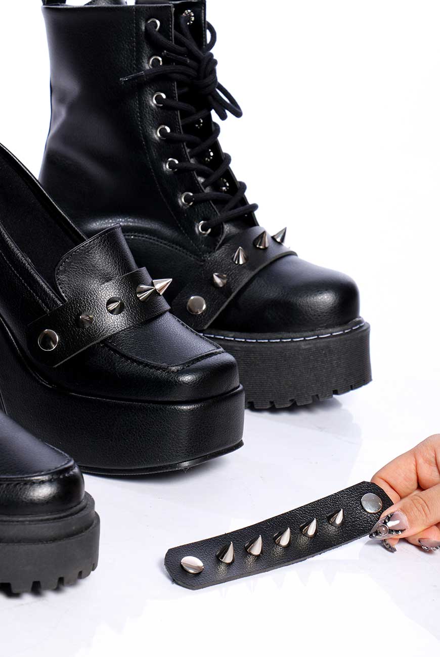 O Acessório Para Sapato Spikes é produzido em napa sintética de origem não animal, conta com spikes niquelados distribuídos nas tiras trazendo muito peso e estilo para o seu visu.