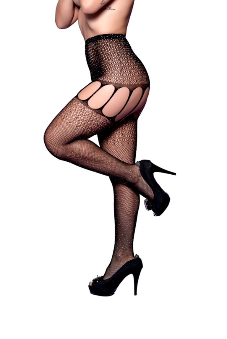 Meia Calça Arrastão Cinta Liga Chandelier Strass