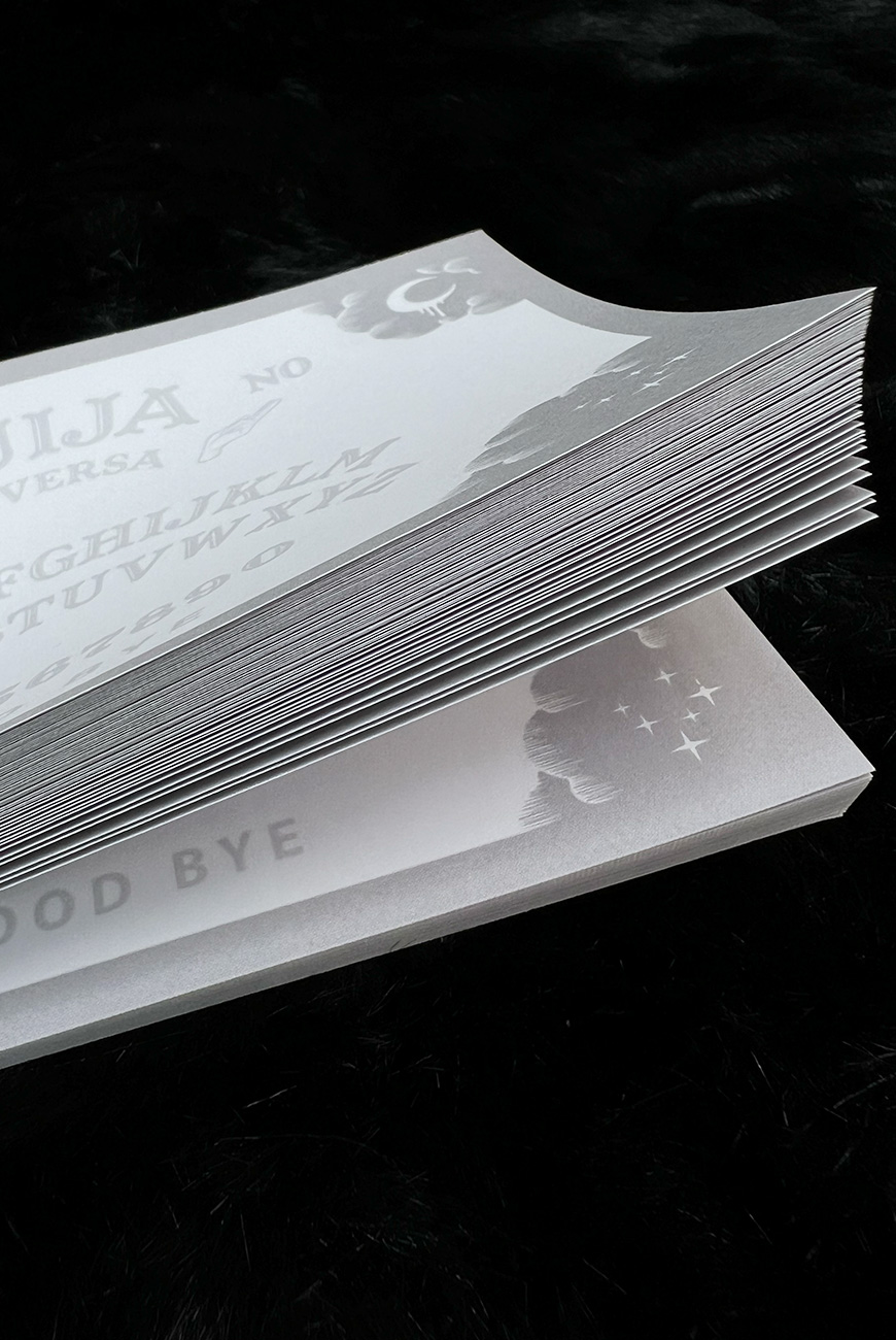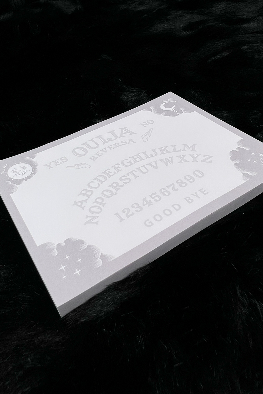 O nosso bloco de anotações Ouija tem arte exclusiva de tabuleiro ouija, para você escrever e se comunicar com os vivos (e os mortos)!