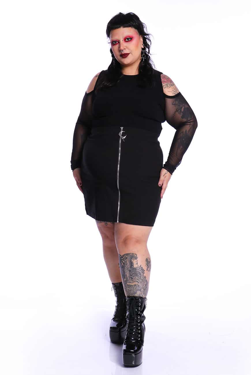 É uma peça bem versátil, combinando super com saias, shorts e calças. Naquele dia mais geladinho de outono, use com a Calça Skinny Preta Obscure e a Bota Coturno Tratorado Max Doom pra aproveitar o seu rolê com muito conforto!