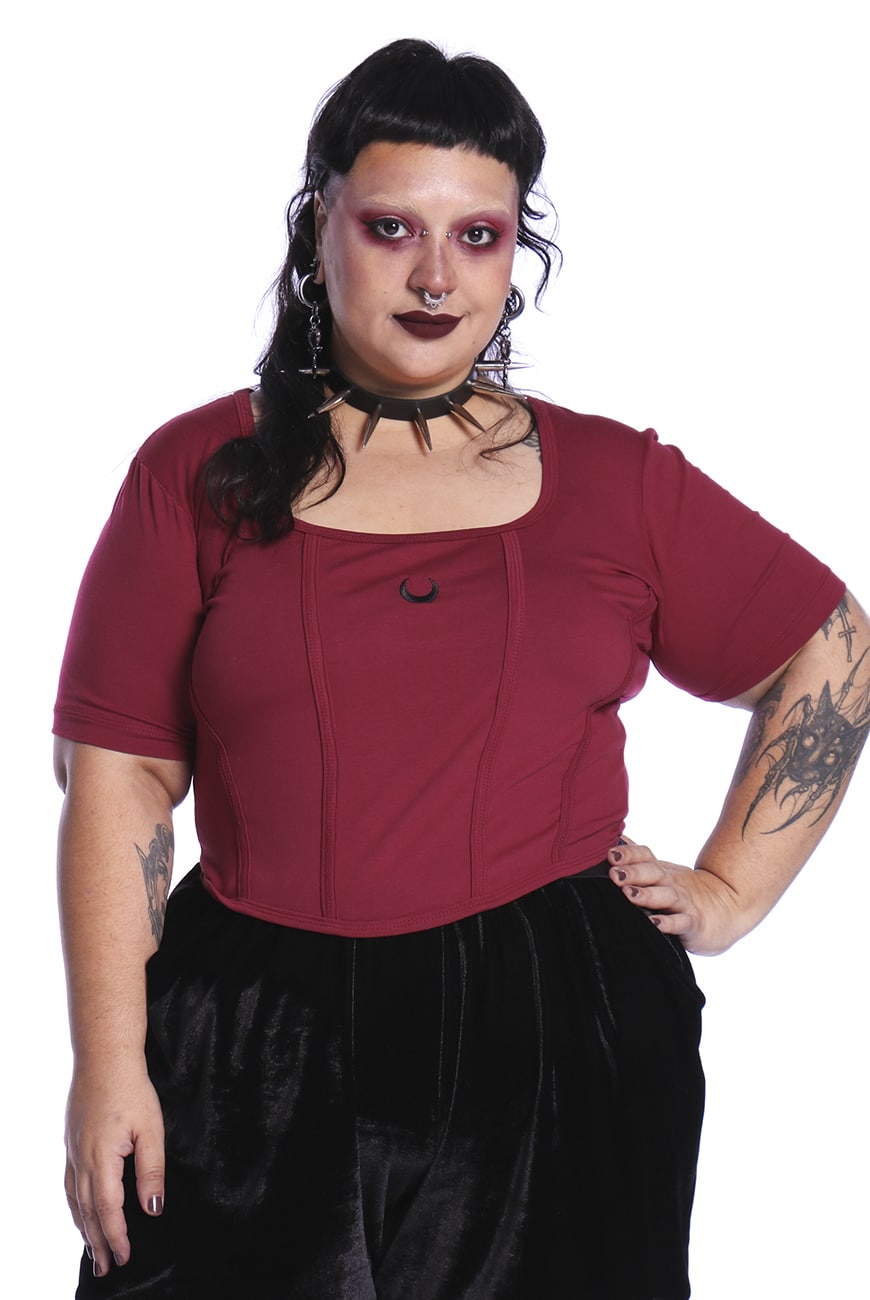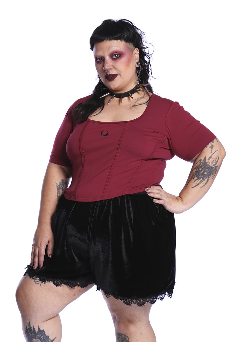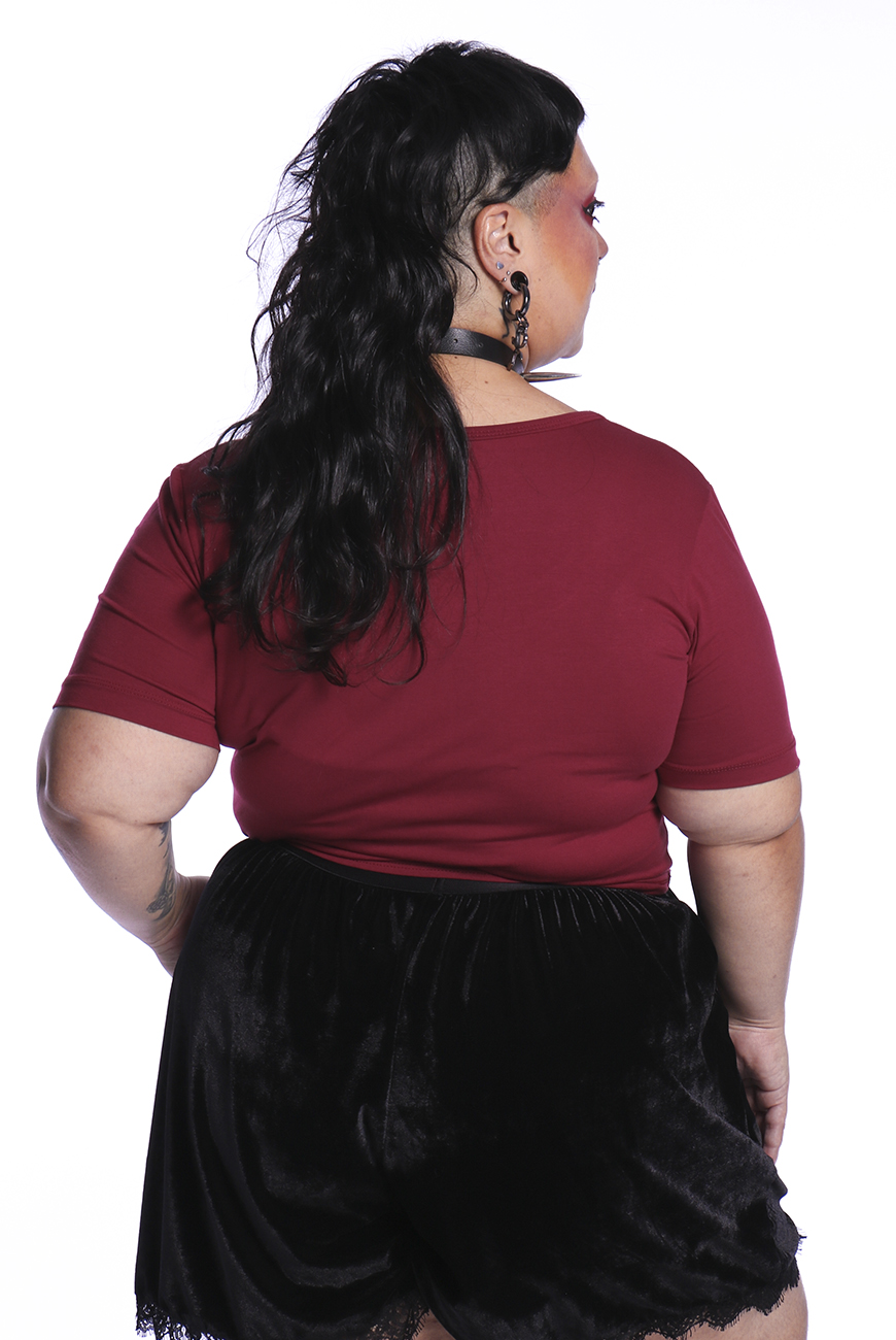 A Blusa Corpete Vinho Akasha é produzida em viscolycra de toque macio e confortável, em um tom de vinho incrível.