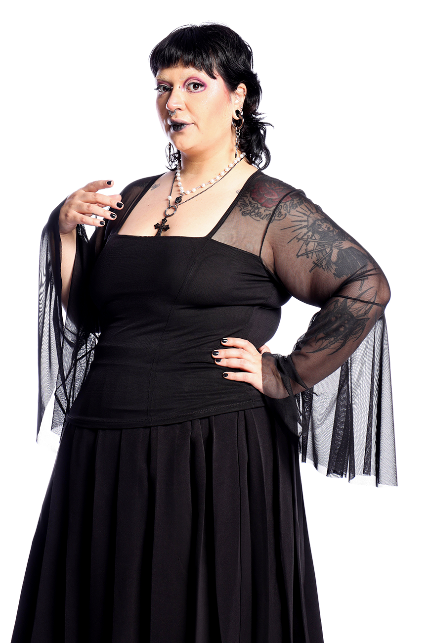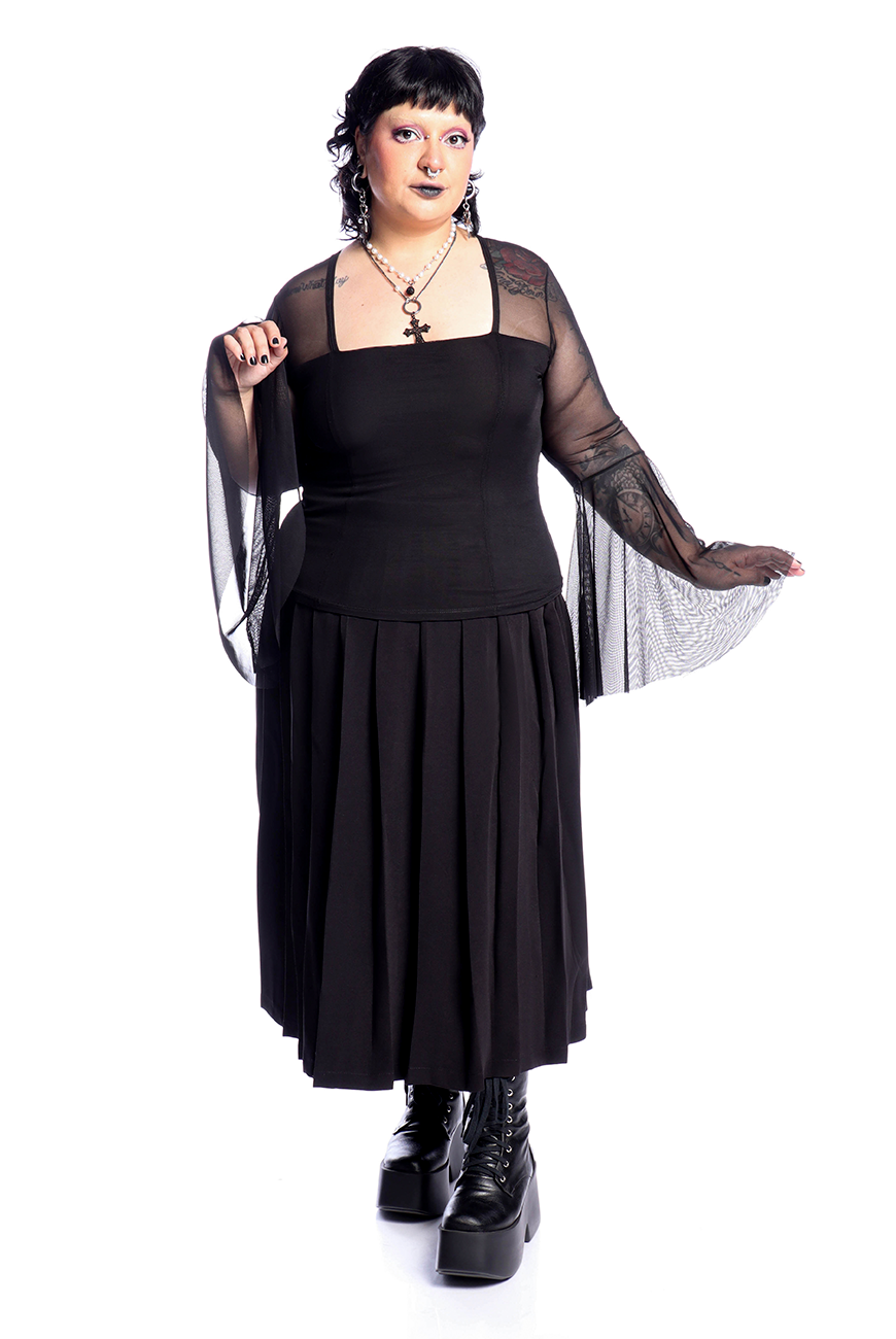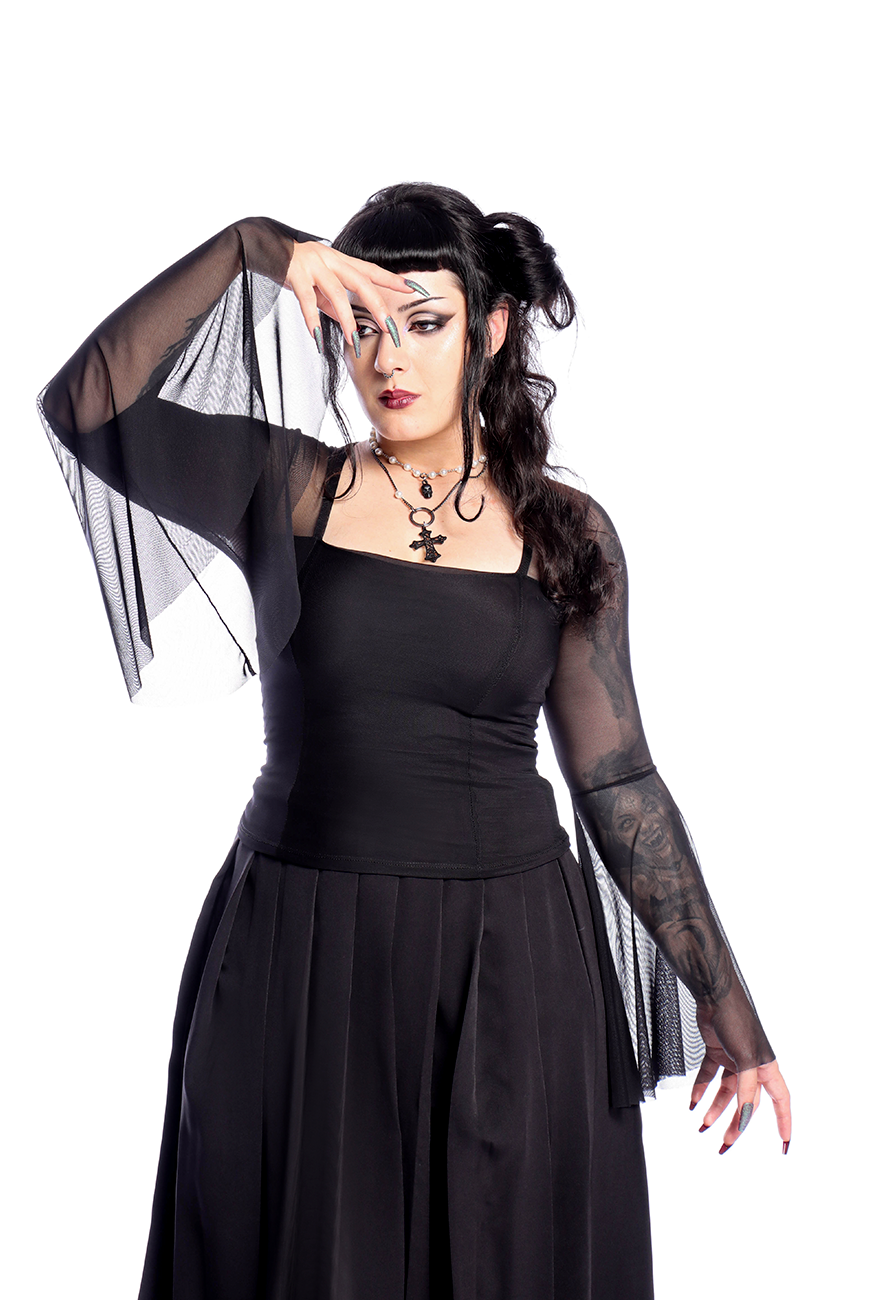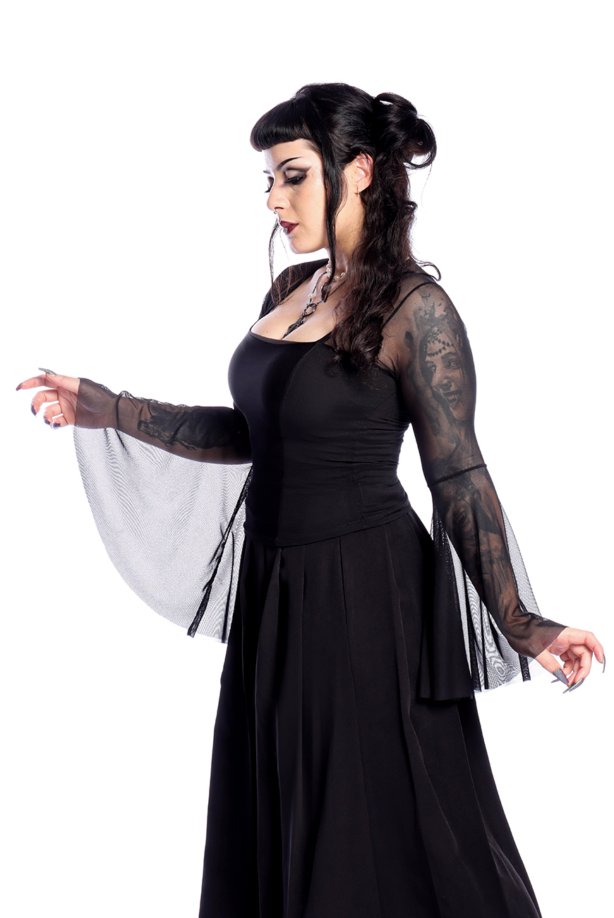 A Blusa Manga Longa Tule Flare Black Dahlia é a blusa perfeita para representar a diva trevosa que você é!