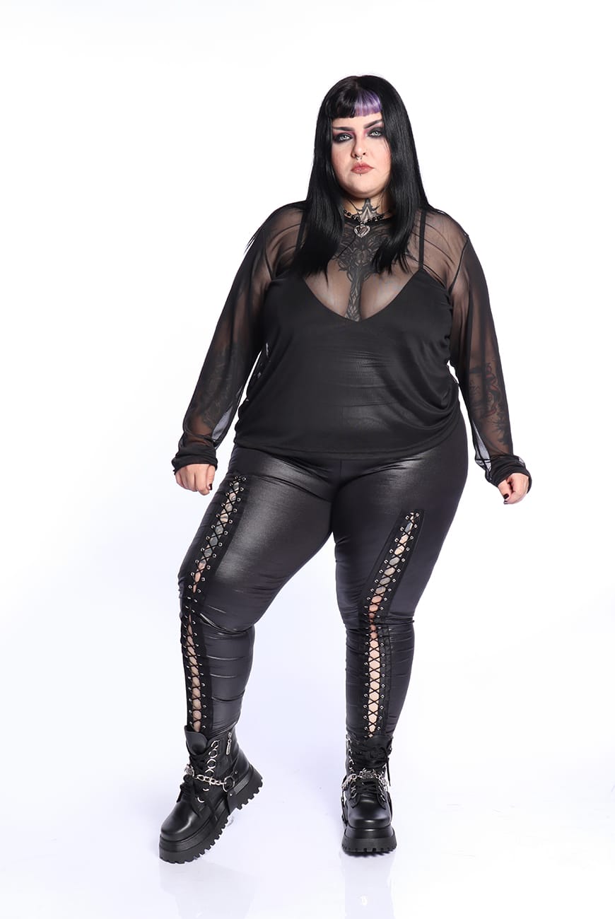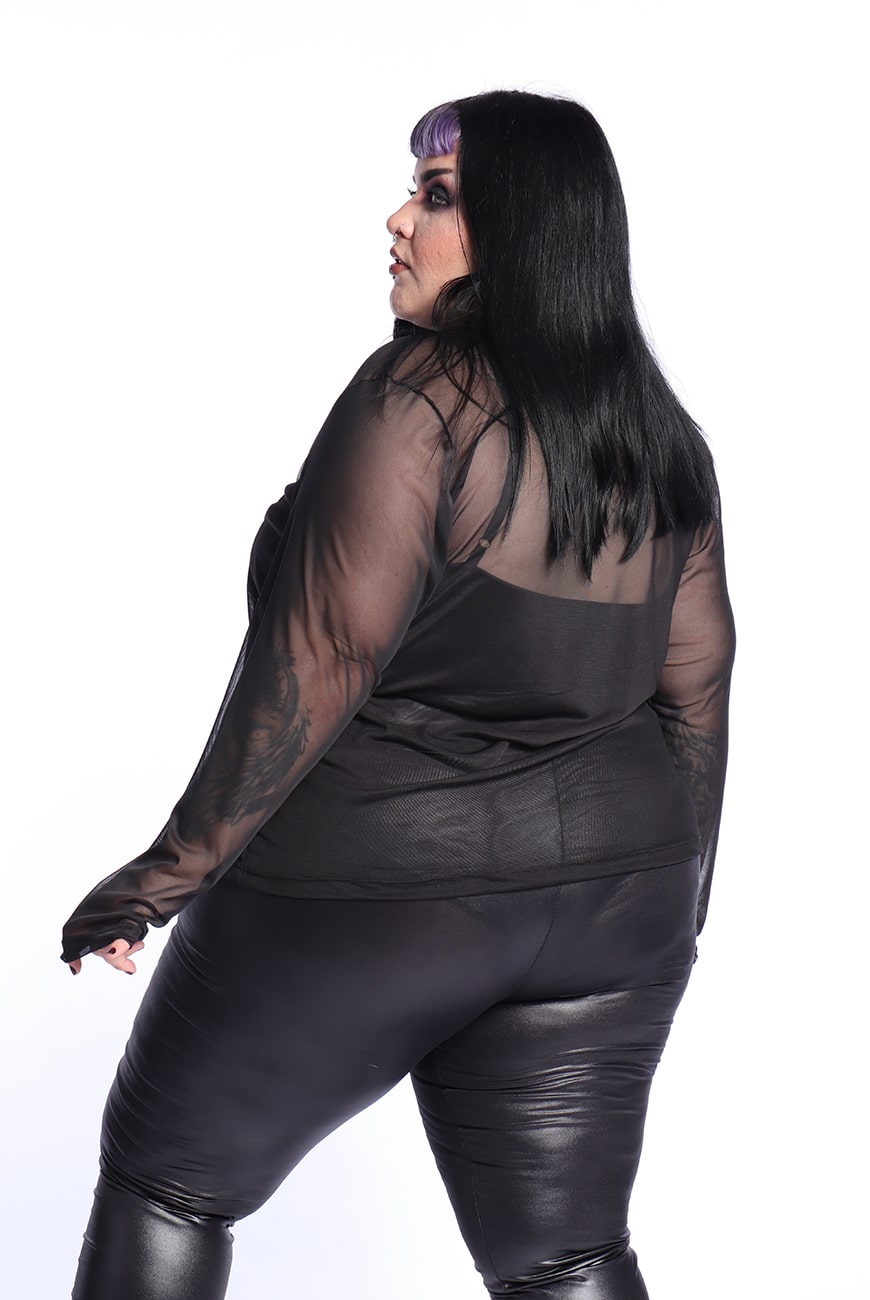 A Blusa Manga Longa Tule Shadow é um modelo estilo segunda pele, com mangas e comprimento longo.