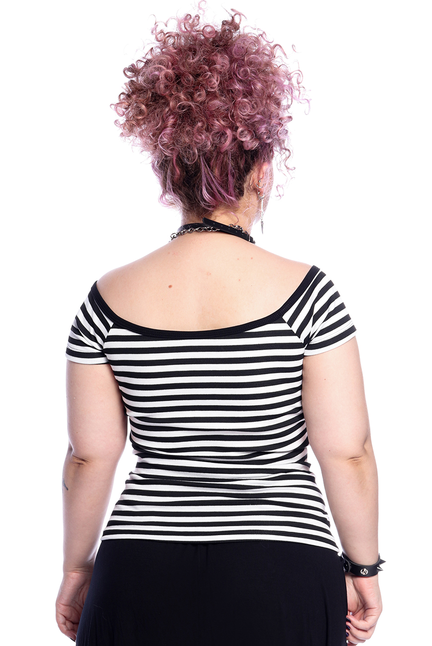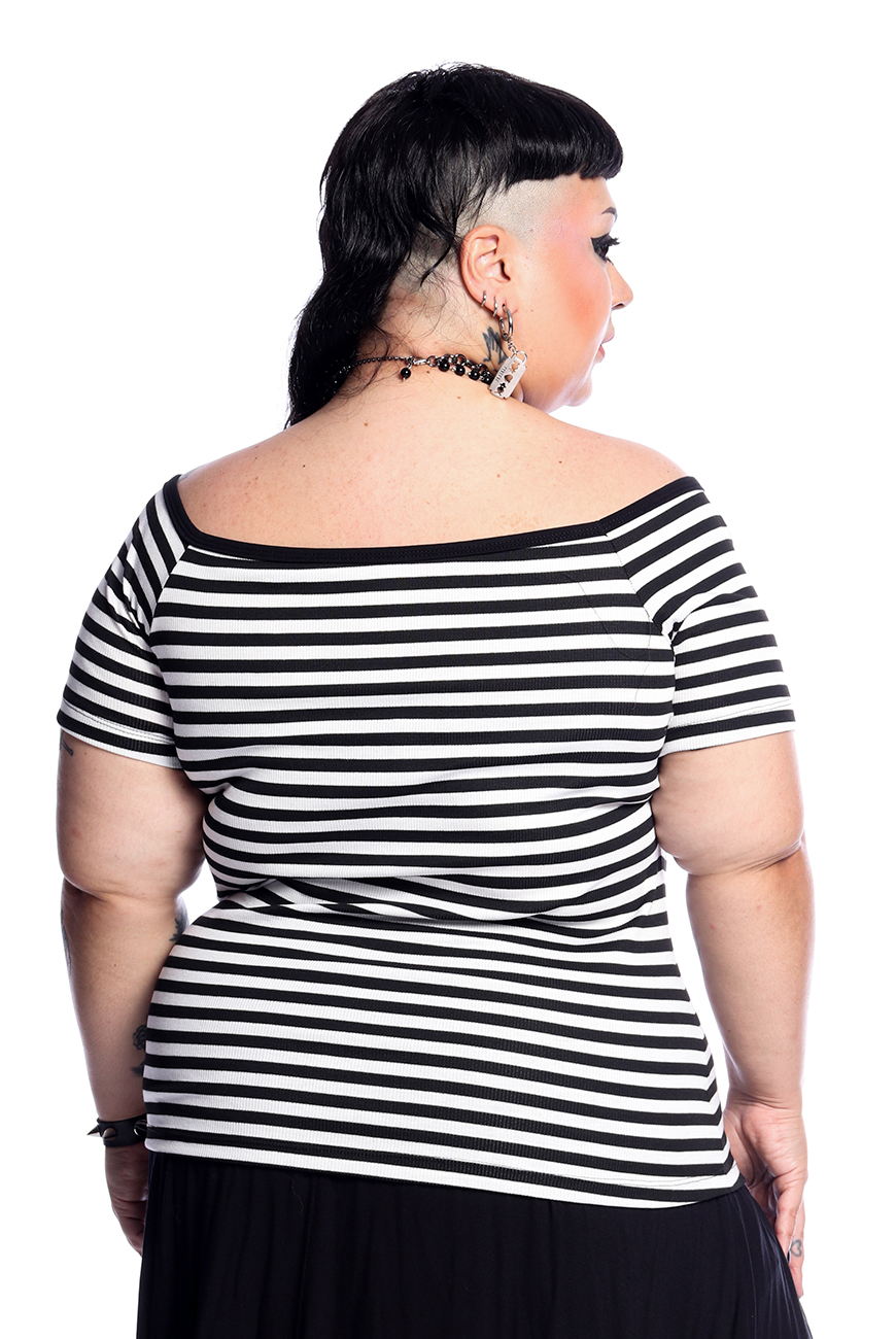 Blusa Ombro a Ombro Listrada Preto e Branca Never