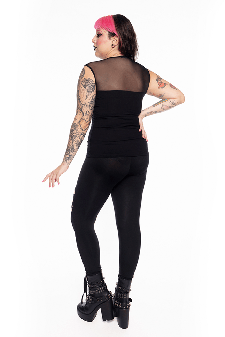 Blusa indispensável no guarda-roupa de qualquer trevosa. Modelo justinho em malha encorpada, com tule nos ombros. Combina com tudo, vai do rolê ao trabalho.