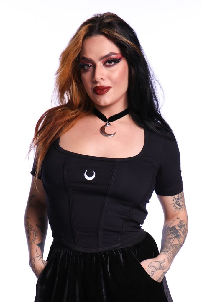 Para um look com inspiração gothic lolita, use com o nosso Vestido Babydoll Preto Catedral e Bota Cano Baixo Tratorada Alecto.