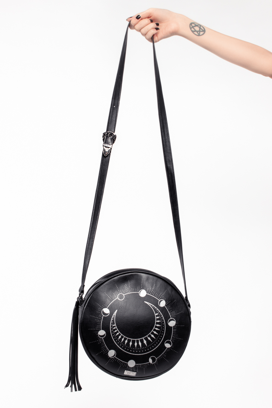 Bolsa redonda com zíper. Idealizada para todas as trevosas filhas da lua.
