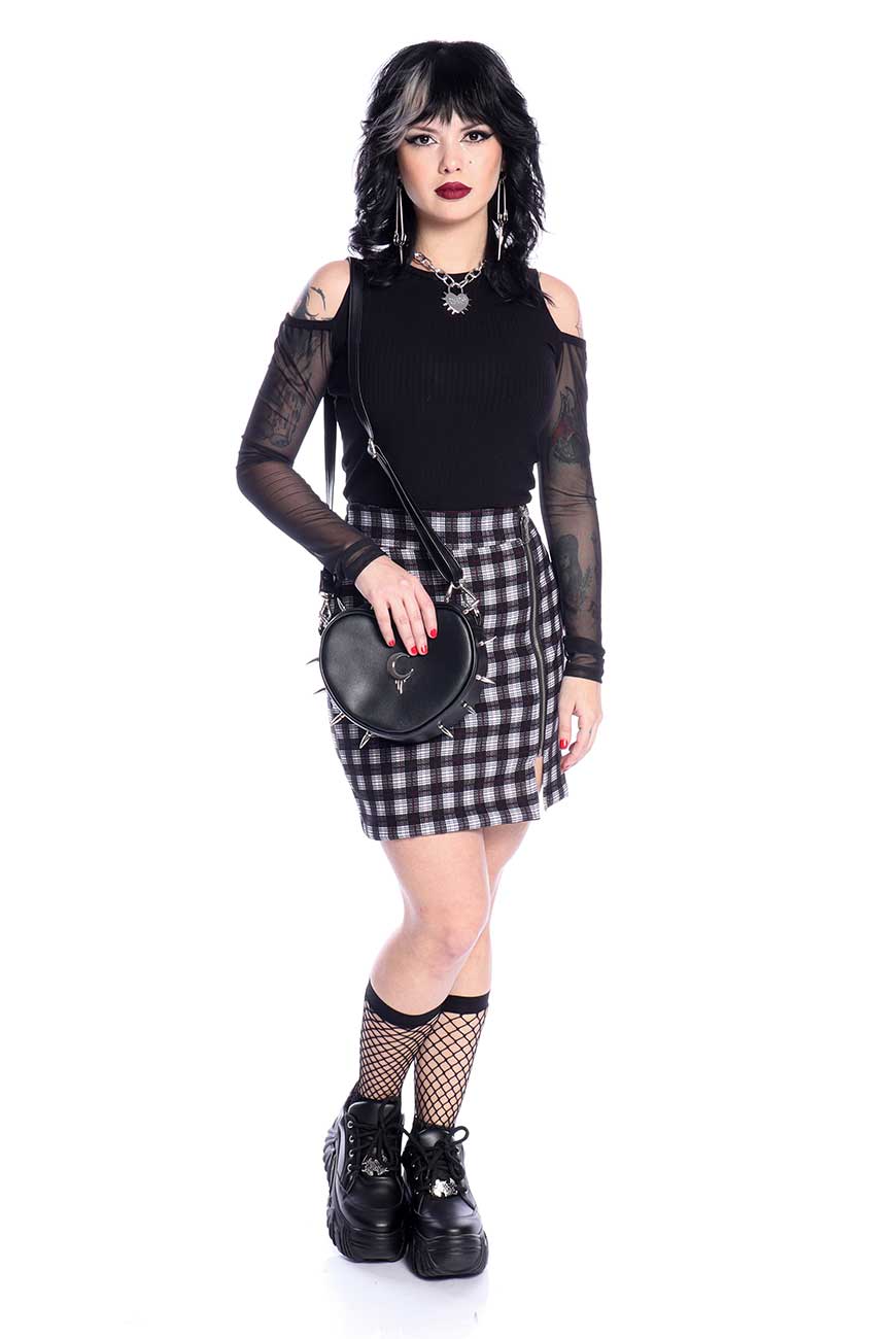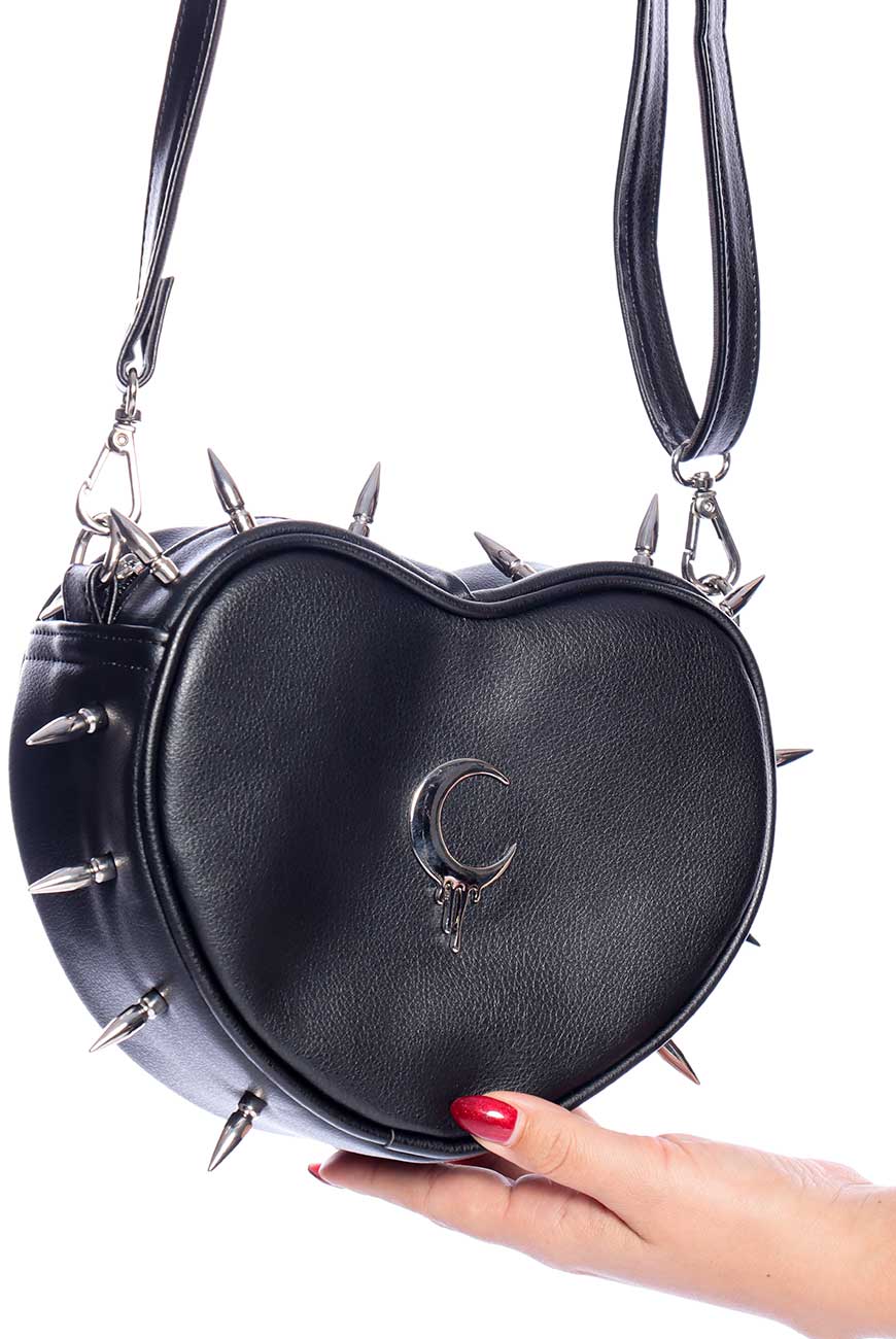 Produzida em material sintético de origem não animal, foi desenvolvida no formato de coração e tem spikes niquelados por toda a sua circunferência.