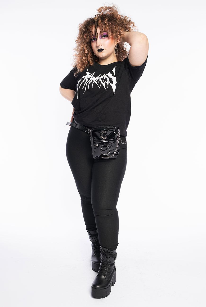 Com passadores para cinto na parte de trás, pode ser usada também como cartucheira (cinto não incluso). Possui forro roxo, fecho em zíper, adorno de metal personalizado Reversa em formato de lua, bolso interno simples e bolso externo frontal com fechamento em zíper.