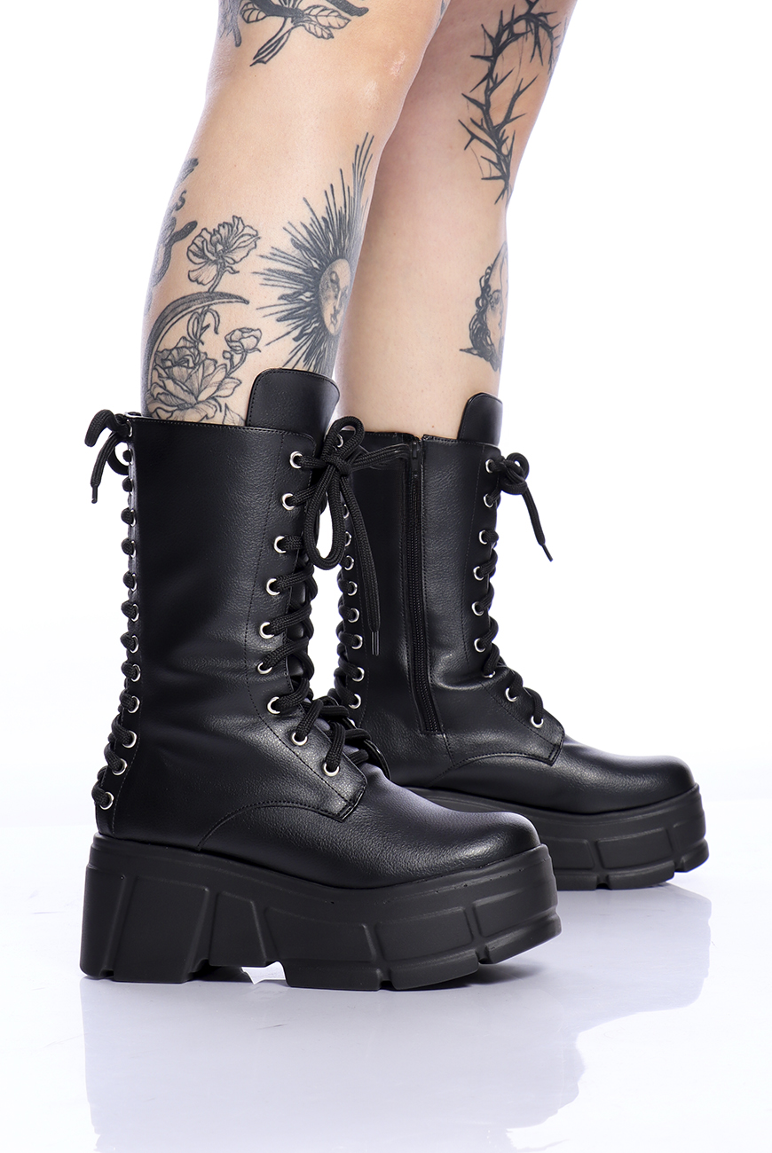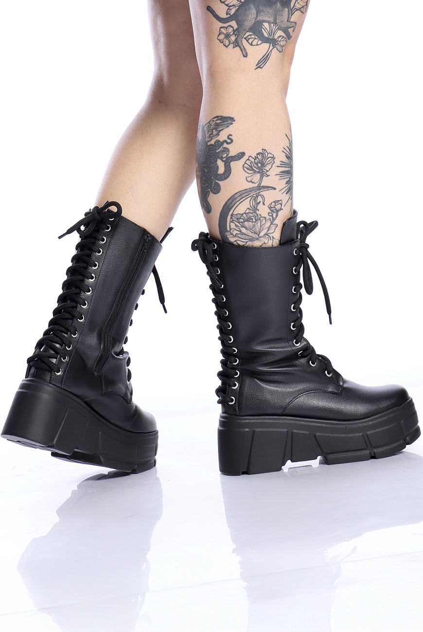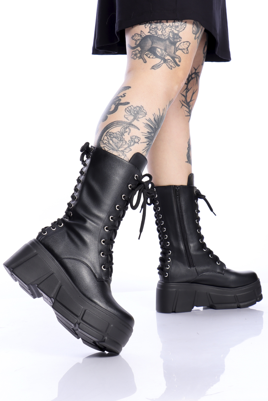 O cabedal é produzido em material sintético de origem não animal, com cano alto e zíper na lateral interna para facilitar o calce. Ela possui cadarço na parte da frente E na parte de trás, trazendo mais estilo pra essa bota NADA básica!