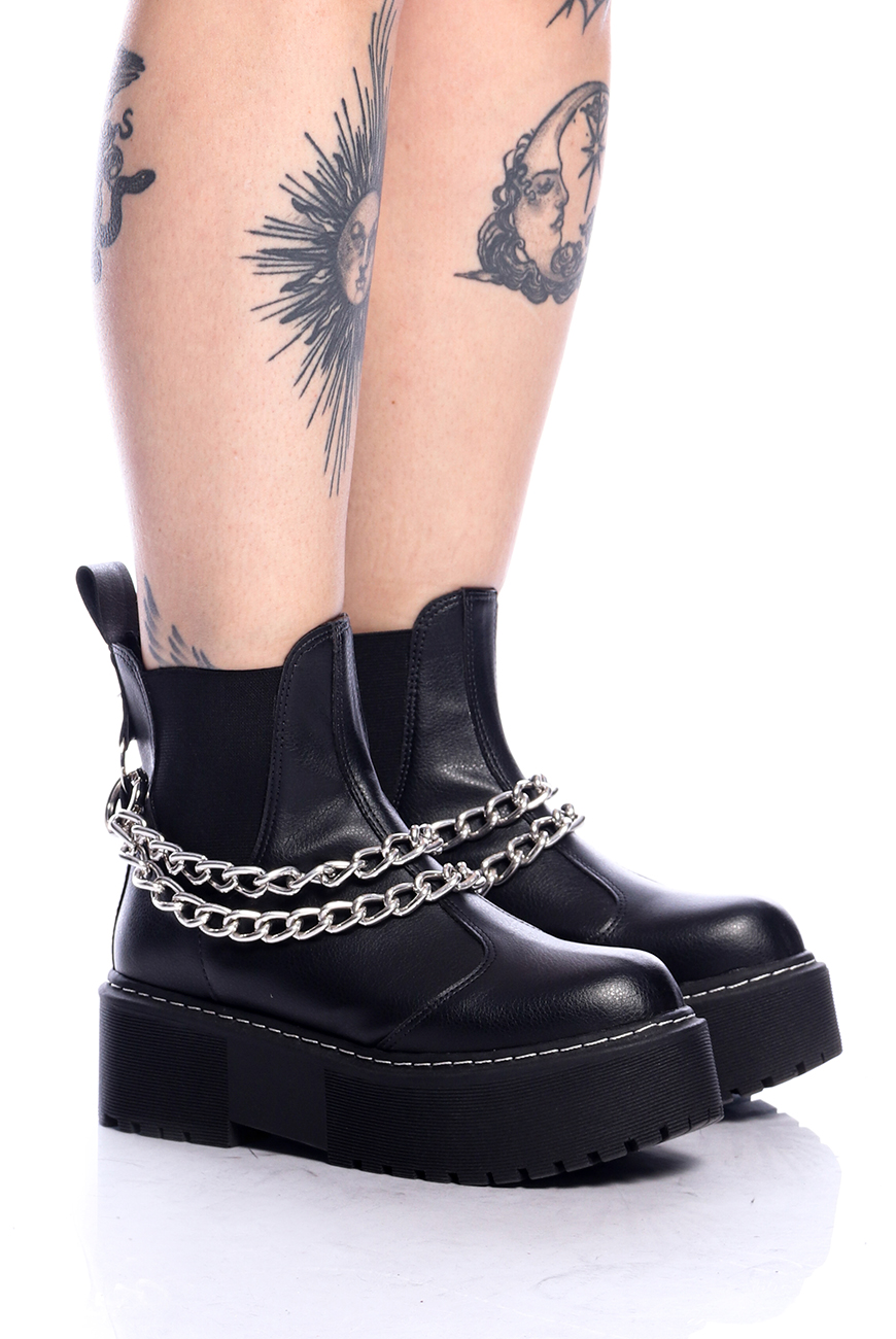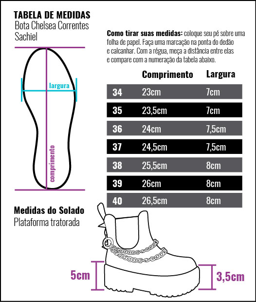 A Bota Chelsea Correntes Sachiel é produzida em material macio e sintético de origem não animal, tem elástico nas laterais para facilitar o calce e um solado super estiloso com recorte no meio.