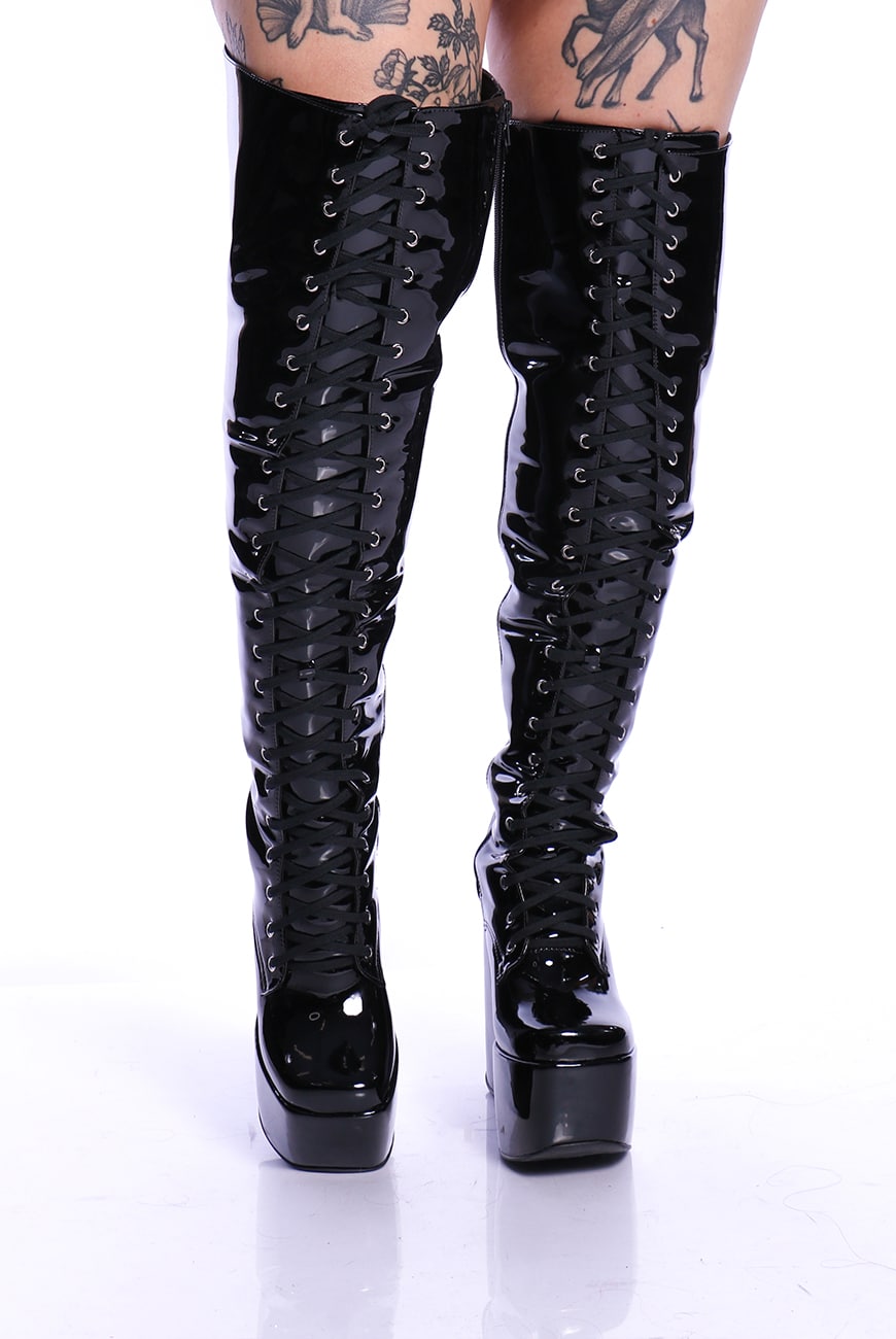 A Bota Plataforma Over the Knee Vinil Hubris é perfeita para compor o seu look matador de alternativa gostosa!