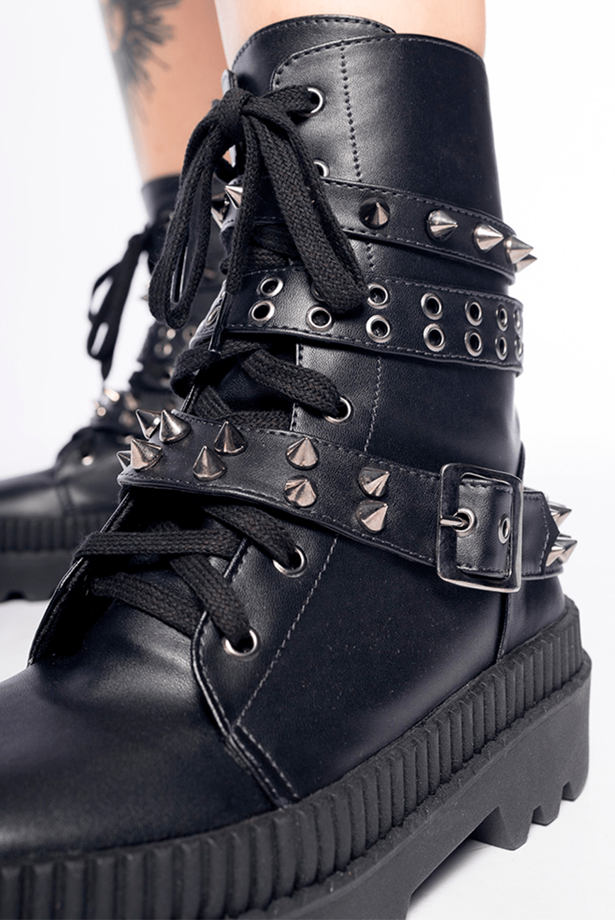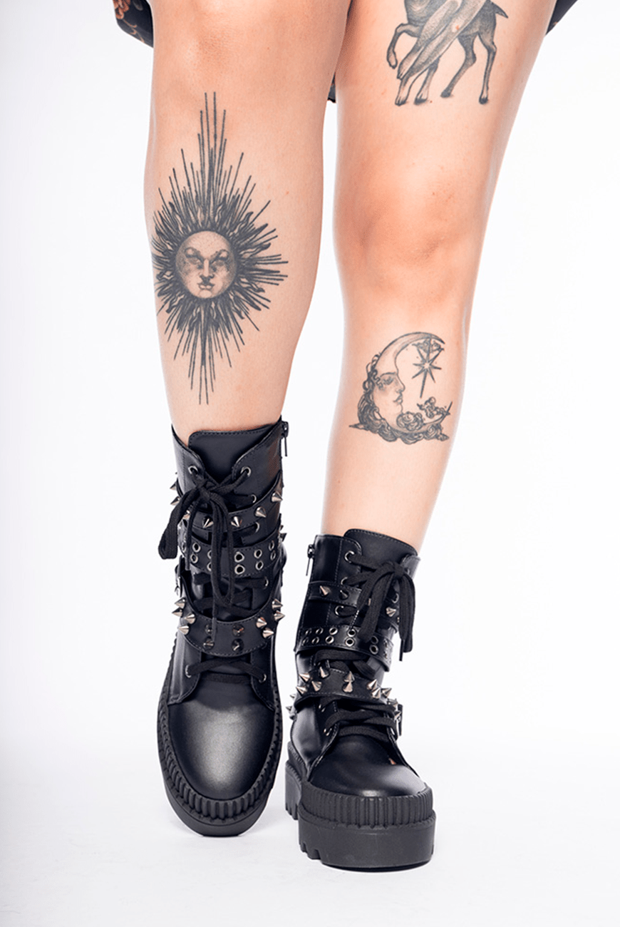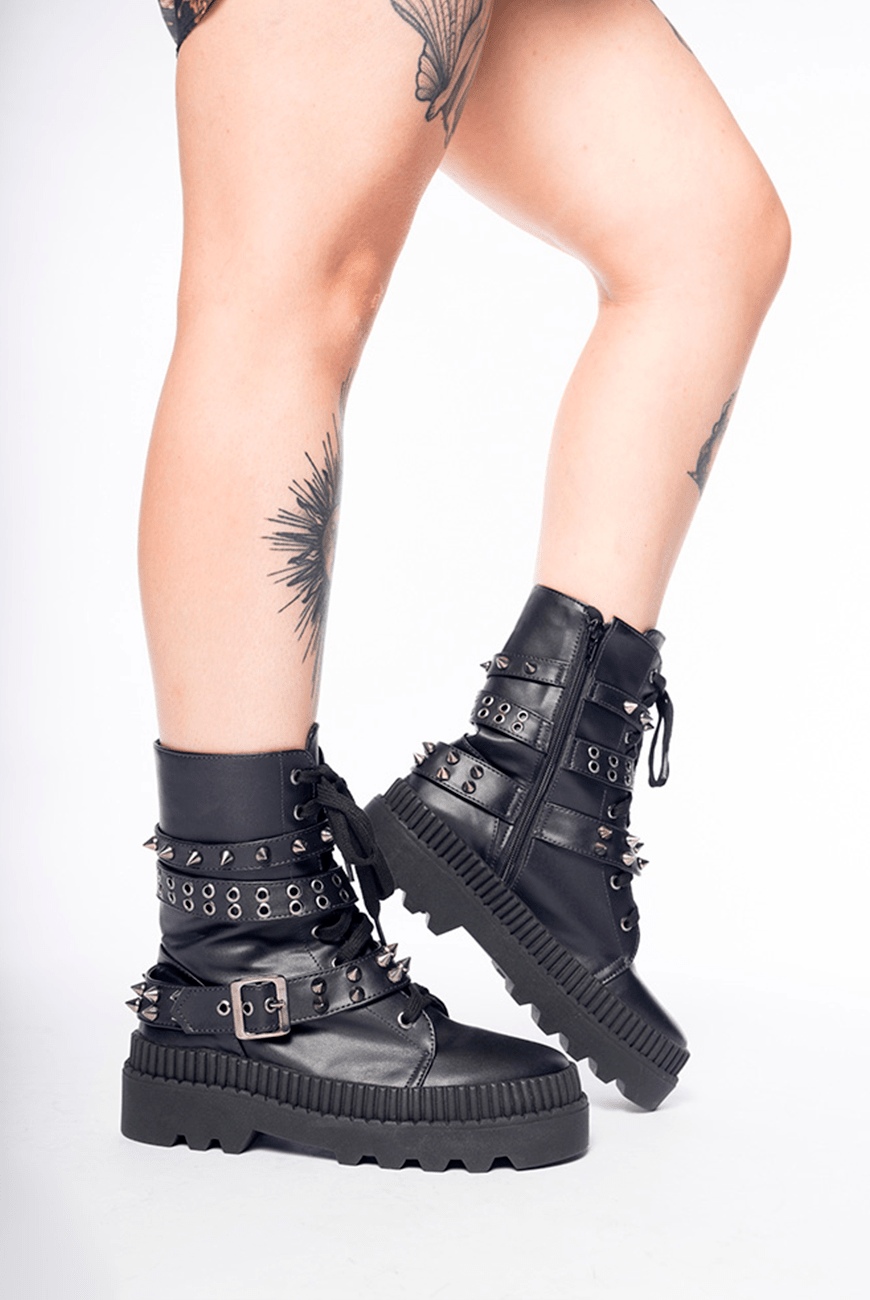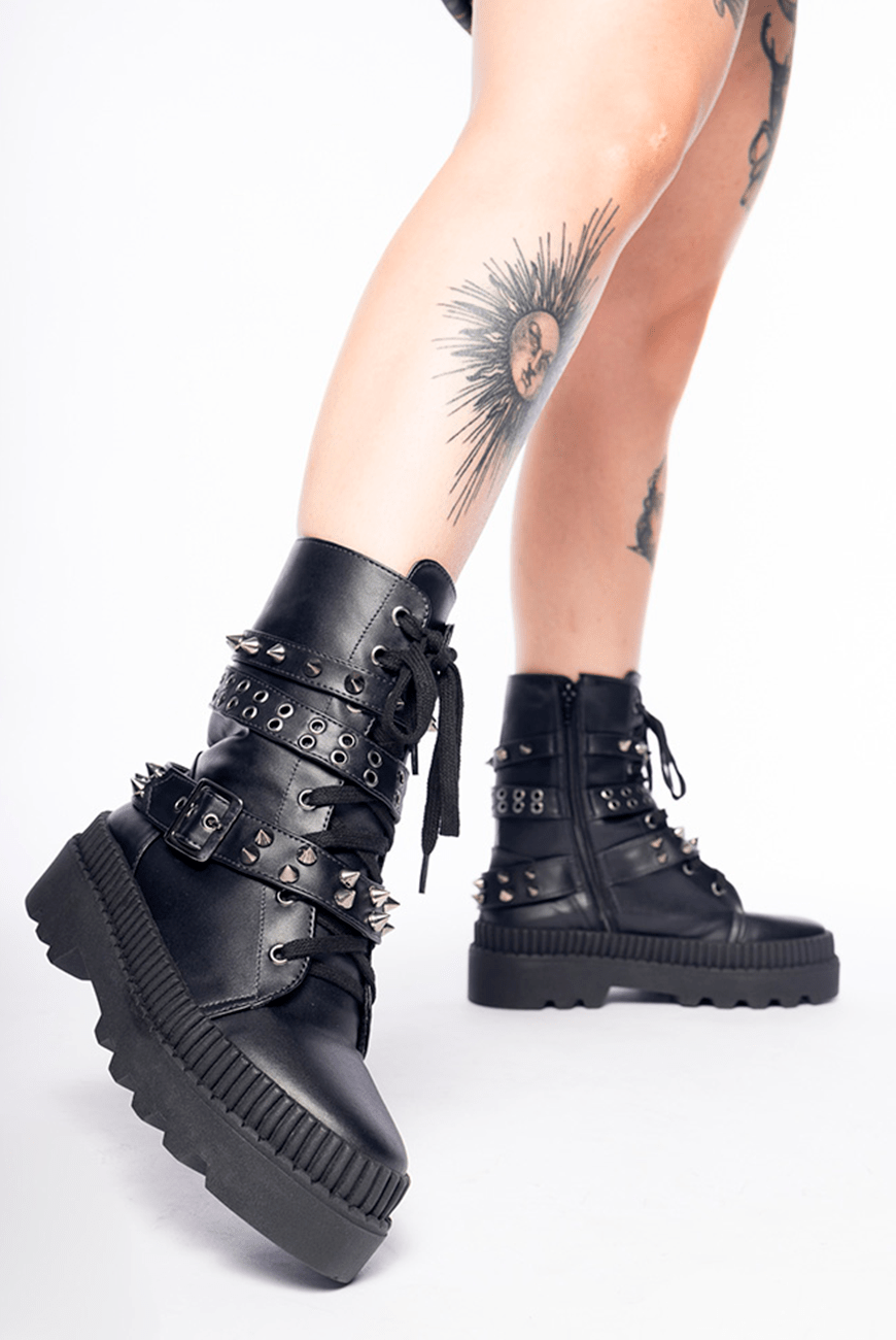 O modelo Lamia que você já ama, agora em nova versão com tiras adornadas de ilhoses e spikes metalizados em banho niquelado e solado tratorado texturizado nas laterais. Modelo super confortável, além de ser perfeito para dar peso no look!
