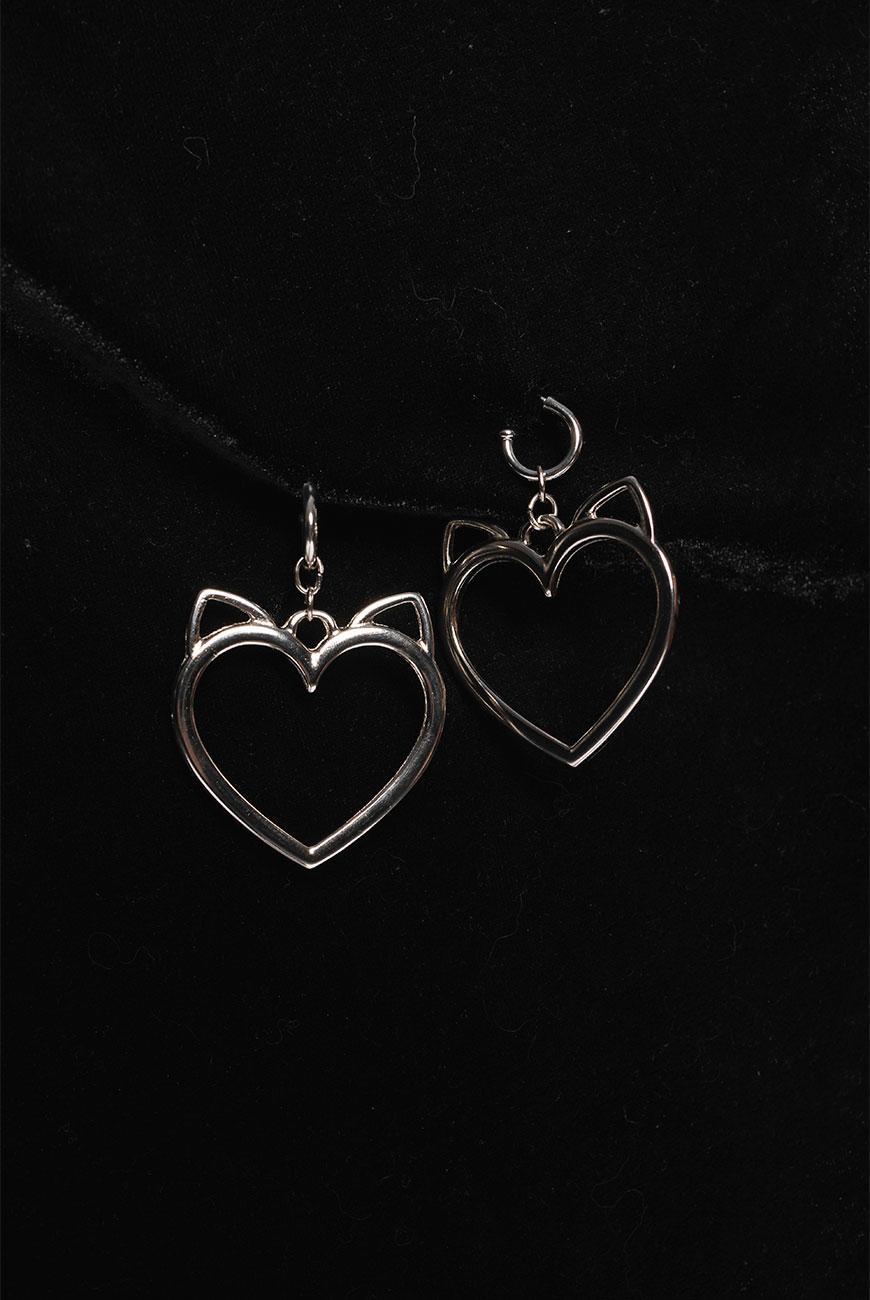 Brinco niquelado de meia argola com tarrachas de silicone, com pingente exclusivo e Bad Kitty. Meow! O brinco mais fofo da Reversa.