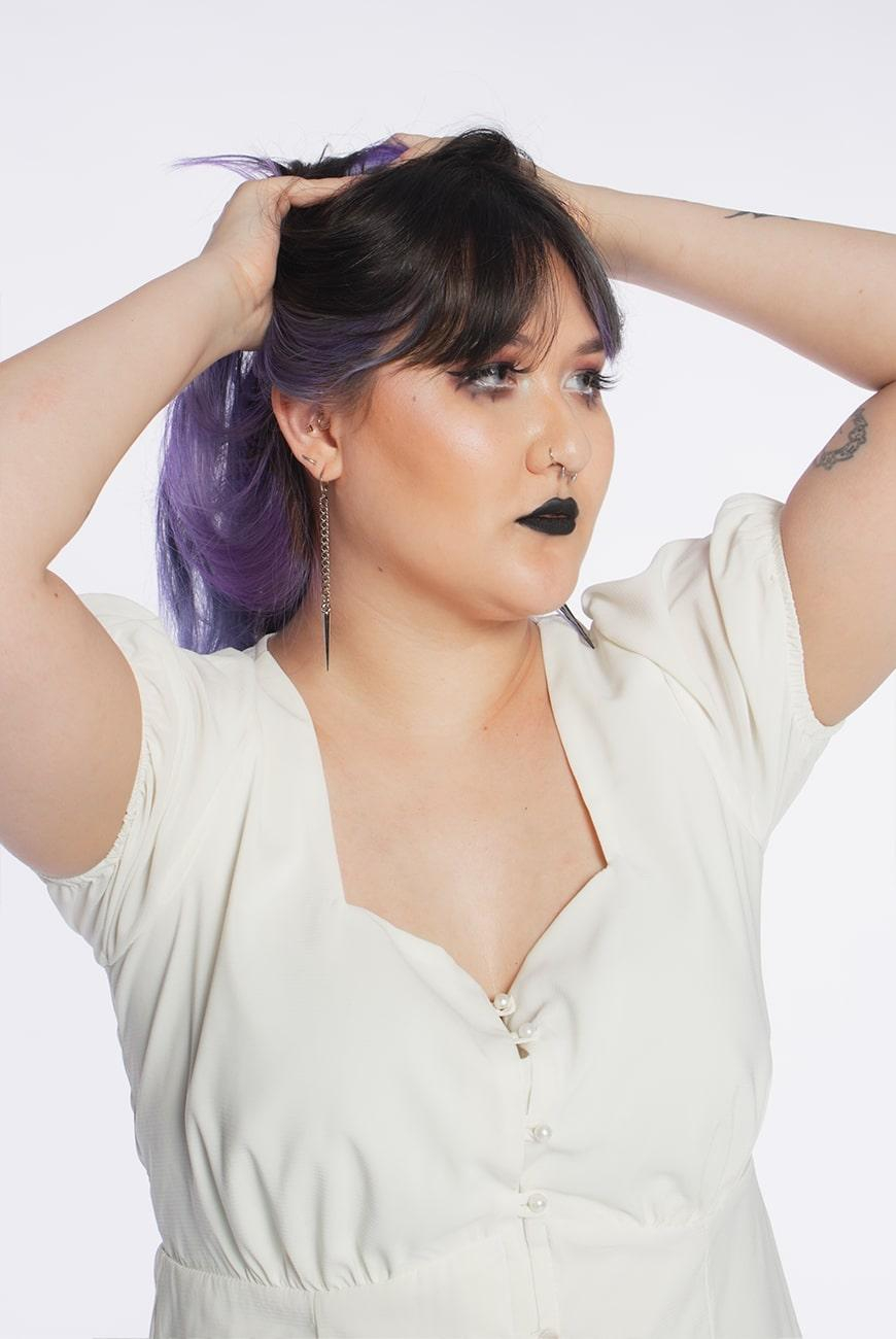 O Brinco Corrente Fangs foi produzido à mão, contem argolas com correntes e um pingente de spikes em cada brinco, sendo um niquelado e um preto.