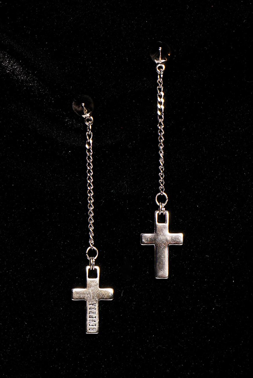 Com uma base de brinco de spike niquelado, tem uma corrente prata com o pingente exclusivo de cruz da Reversa, trazendo um peso a mais pro seu visual.