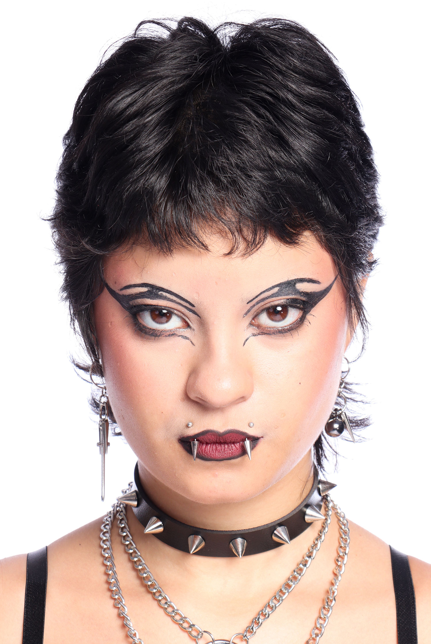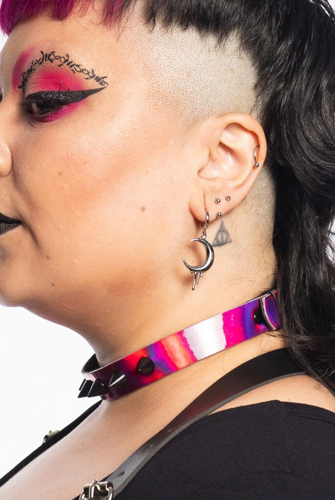 Possui duas composições: Um lado conta com um pingente de bola ônix e spikes, e o outro possui um pingente de espada com spikes. Os dois lados possuem base de brincos de argolas pequenas para usar.