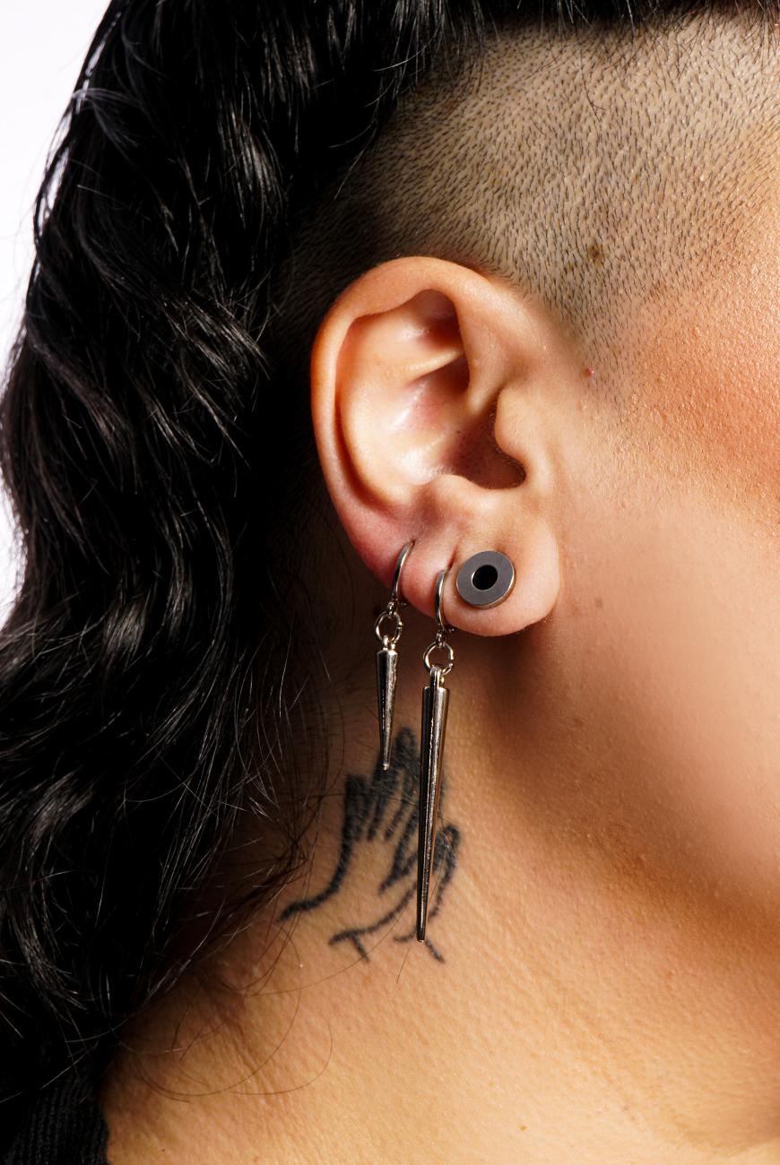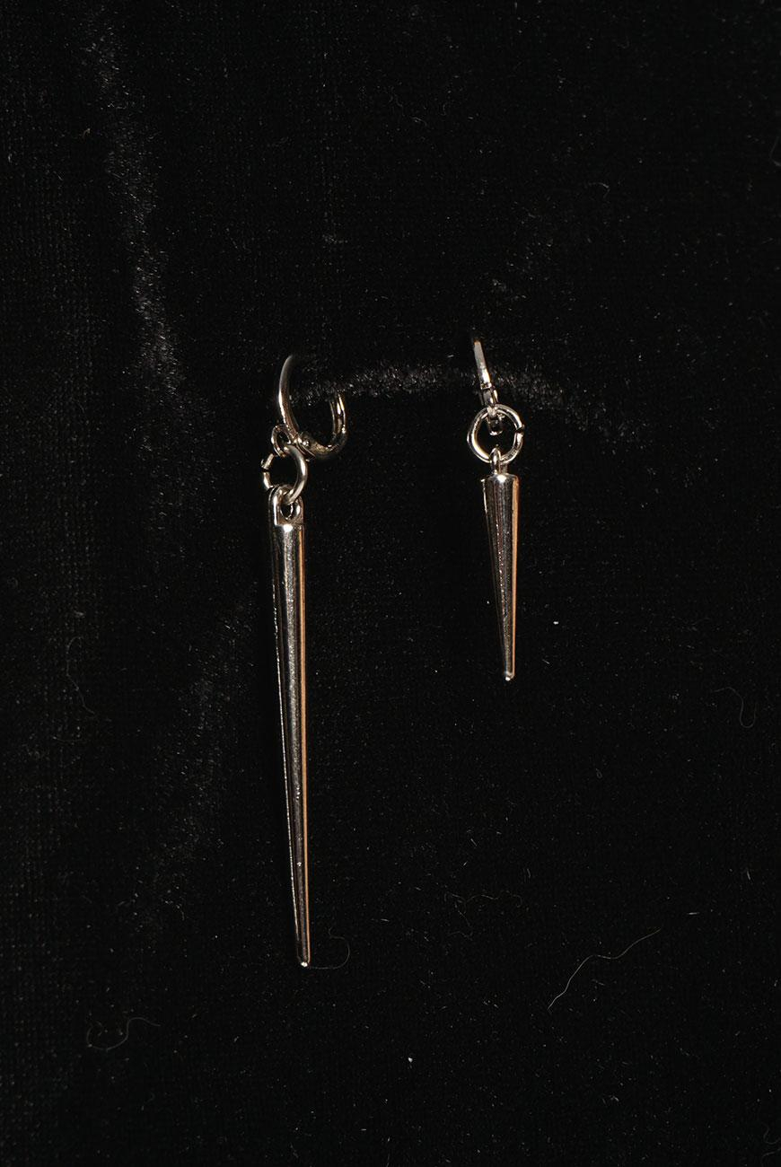 Brinco de argola pequena com spikes niquelados de tamanhos diferentes.