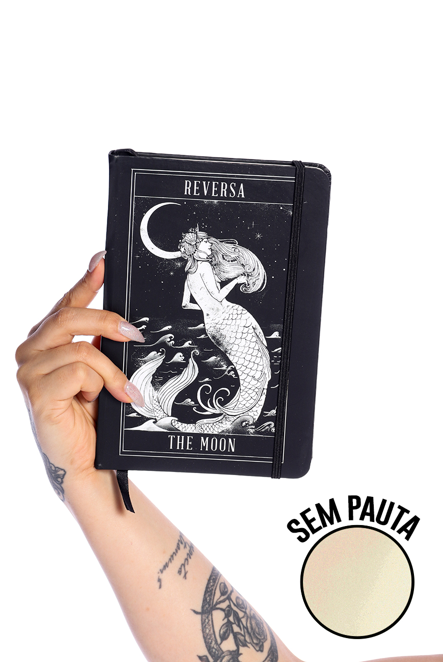 A Caderneta Sem Pauta The Moon possui capa dura com arte exclusiva da nossa versão da carta da lua do tarot, do jeitinho místico que a gente AMA!