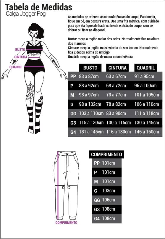 Modelo tamanho G3: Altura: 1,60m/ Cintura: 98cm/ Busto: 121cm/ Quadril: 133cm.