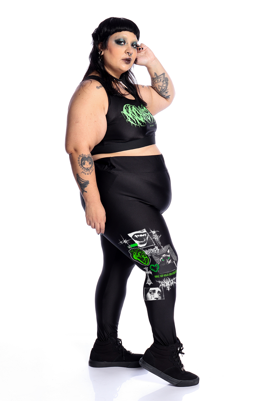 Procurando uma legging estilosa para se exercitar? A Calça Legging Preta Meowtivation é perfeita para você!