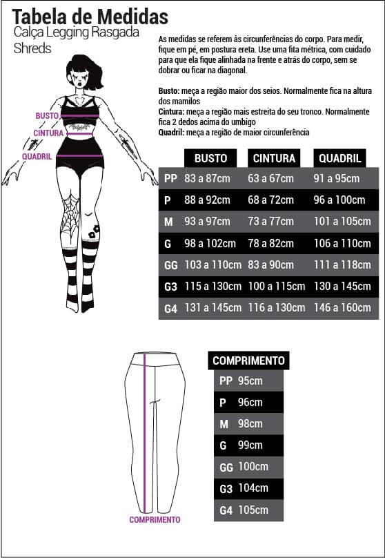A Calça Legging Rasgada Shreds é produzida em suplex de alta qualidade, trazendo conforto e durabilidade durante o uso.