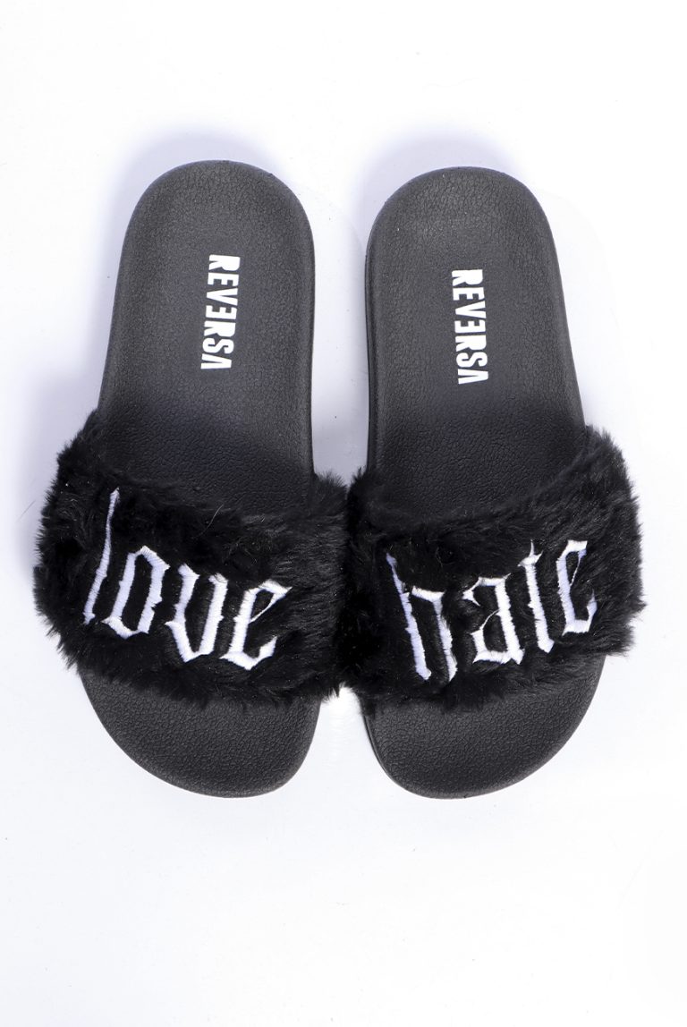 Chinelo Pelúcia Preto Love Hate