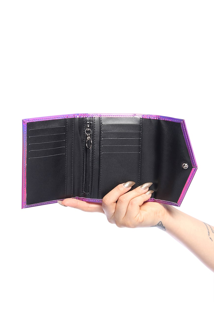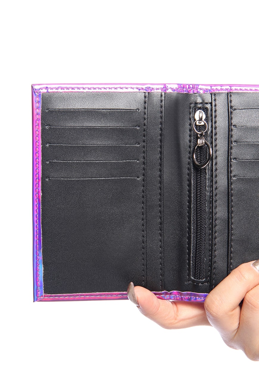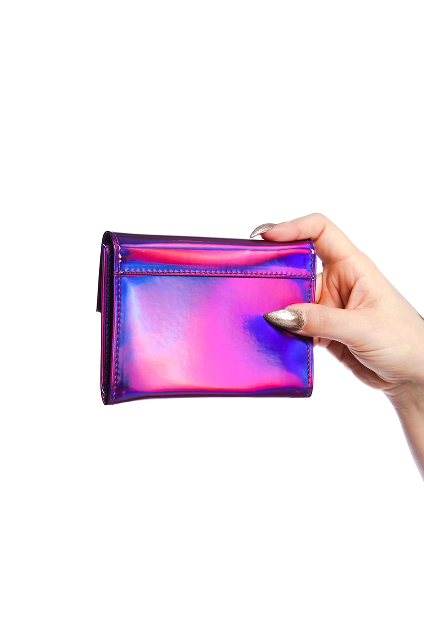 A Carteira Média Purple Haze é produzida em material sintético holográfico na cor roxa, com um brilho incrível e detalhe frontal lindíssimo da nossa Lua no banho níquel.