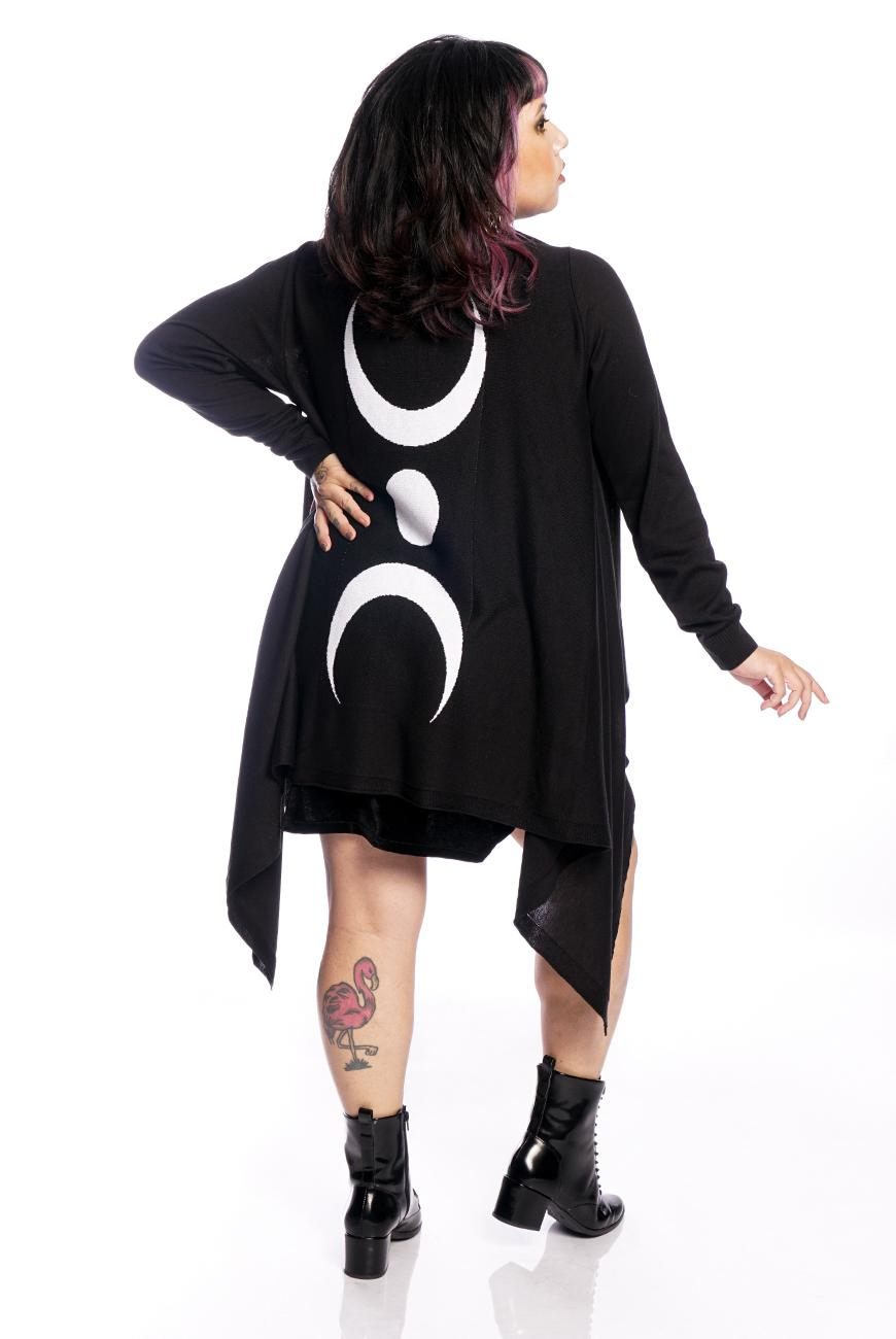 Sua modelagem é ampla, com um caimento leve e assimétrico na parte da frente, e nas costas temos o detalhe lindíssimo de triluna feito no jacquard, tornando a peça ideal para o look bruxiane de outono que todas amam!