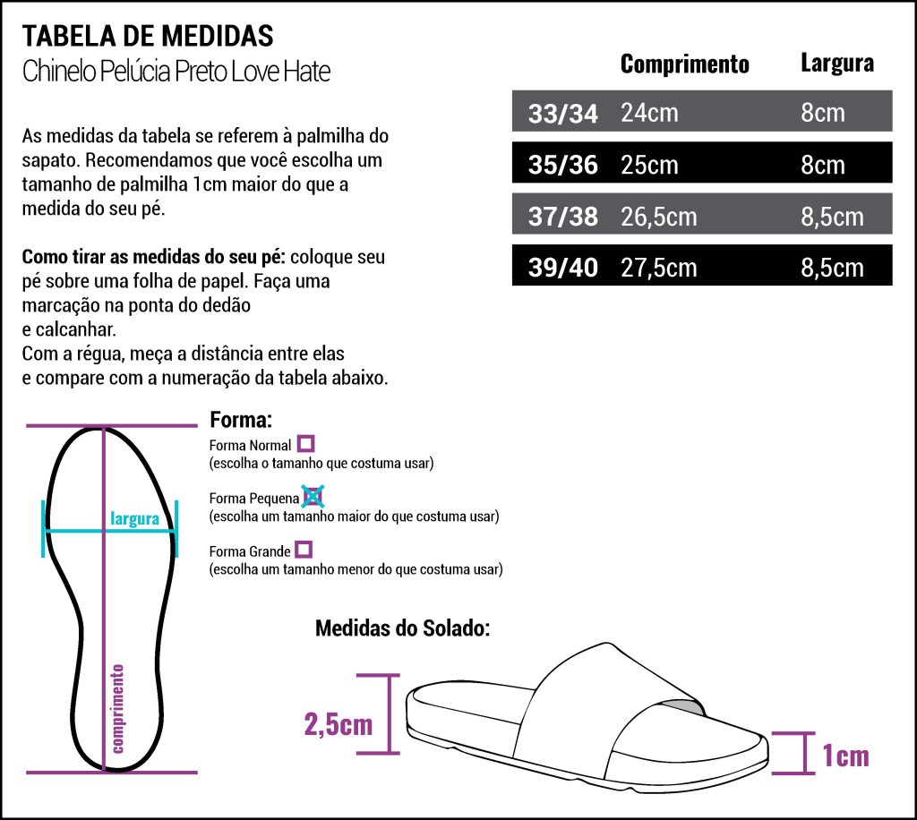 Obs: O chinelo possui forma pequena. Recomendamos comprar 1 tamanho maior do que costuma usar.