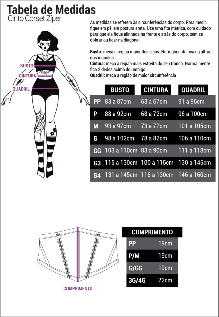 Modelo tamanho GG: Altura: 1,60m/ Cintura: 96cm/ Busto: 114cm/ Quadril: 129cm.