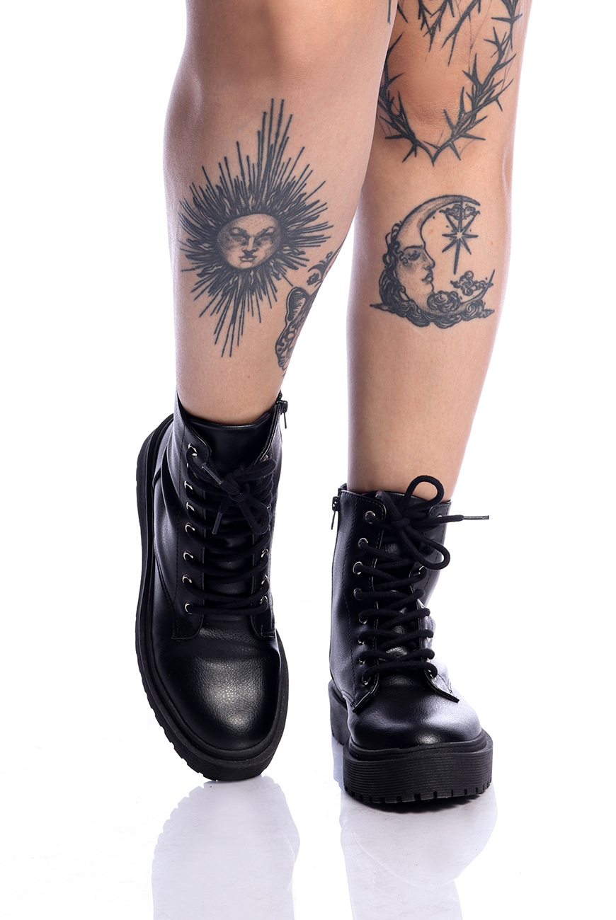 O Coturno Unissex Chunky Preto é produzido em material sintético de origem não animal, com inspiração no modelo clássico de coturnos dos anos 60.