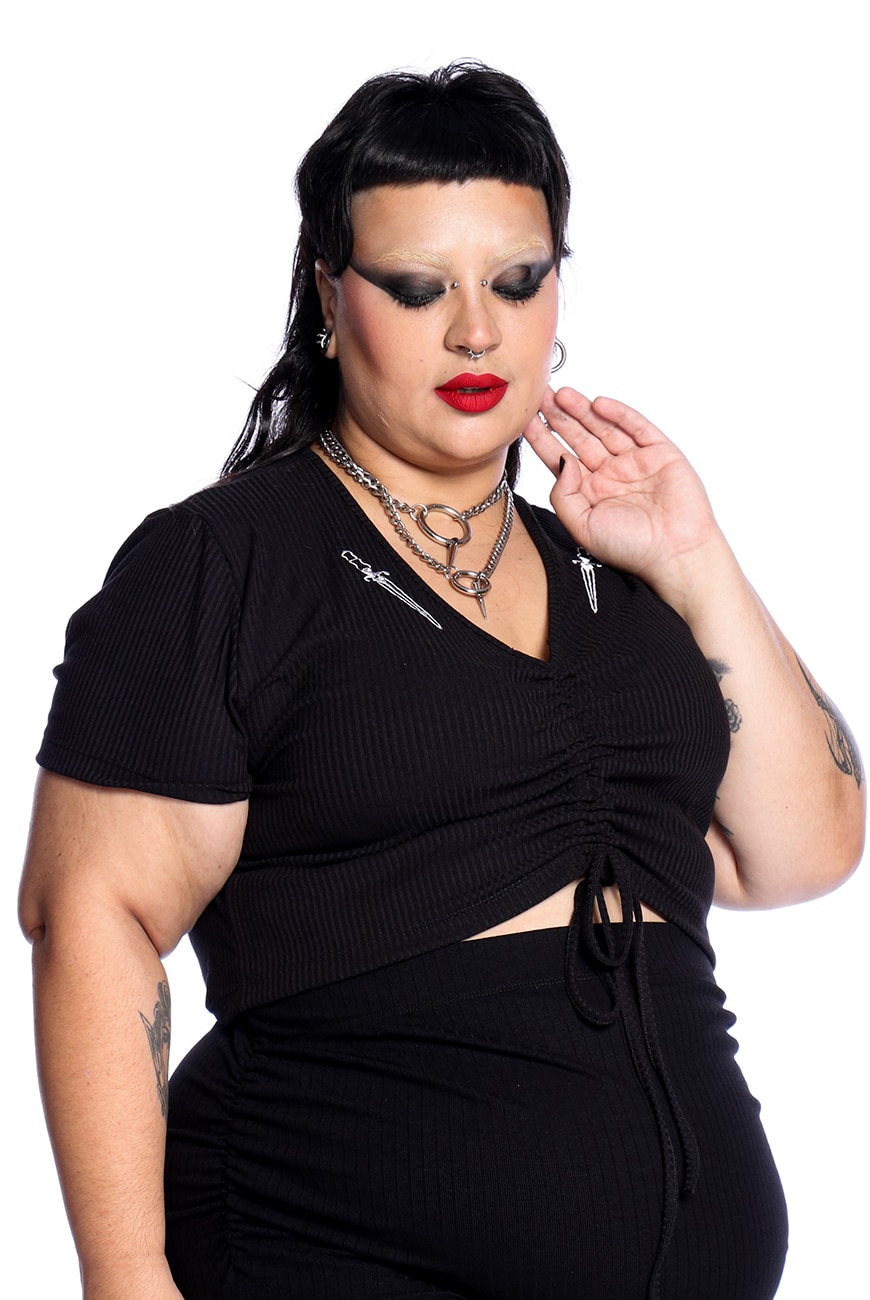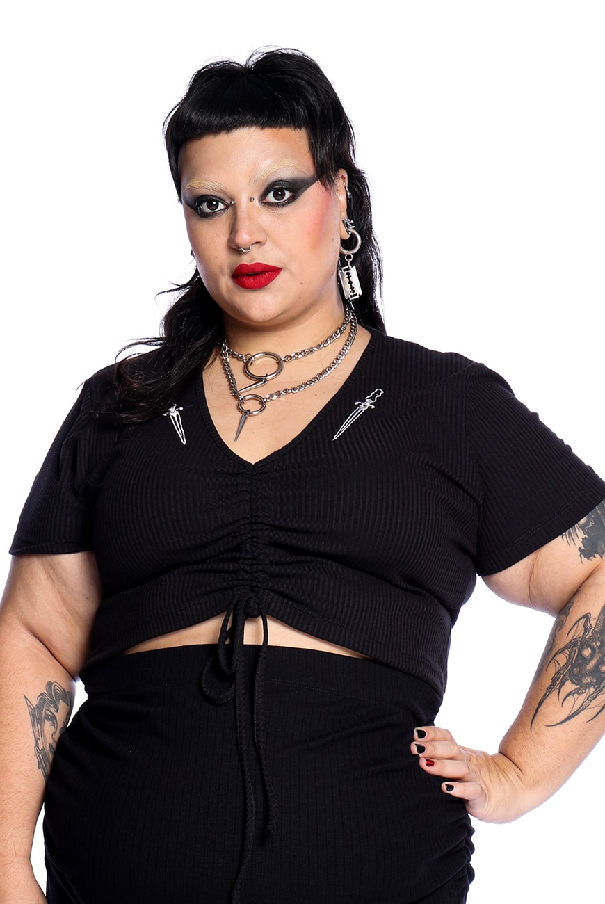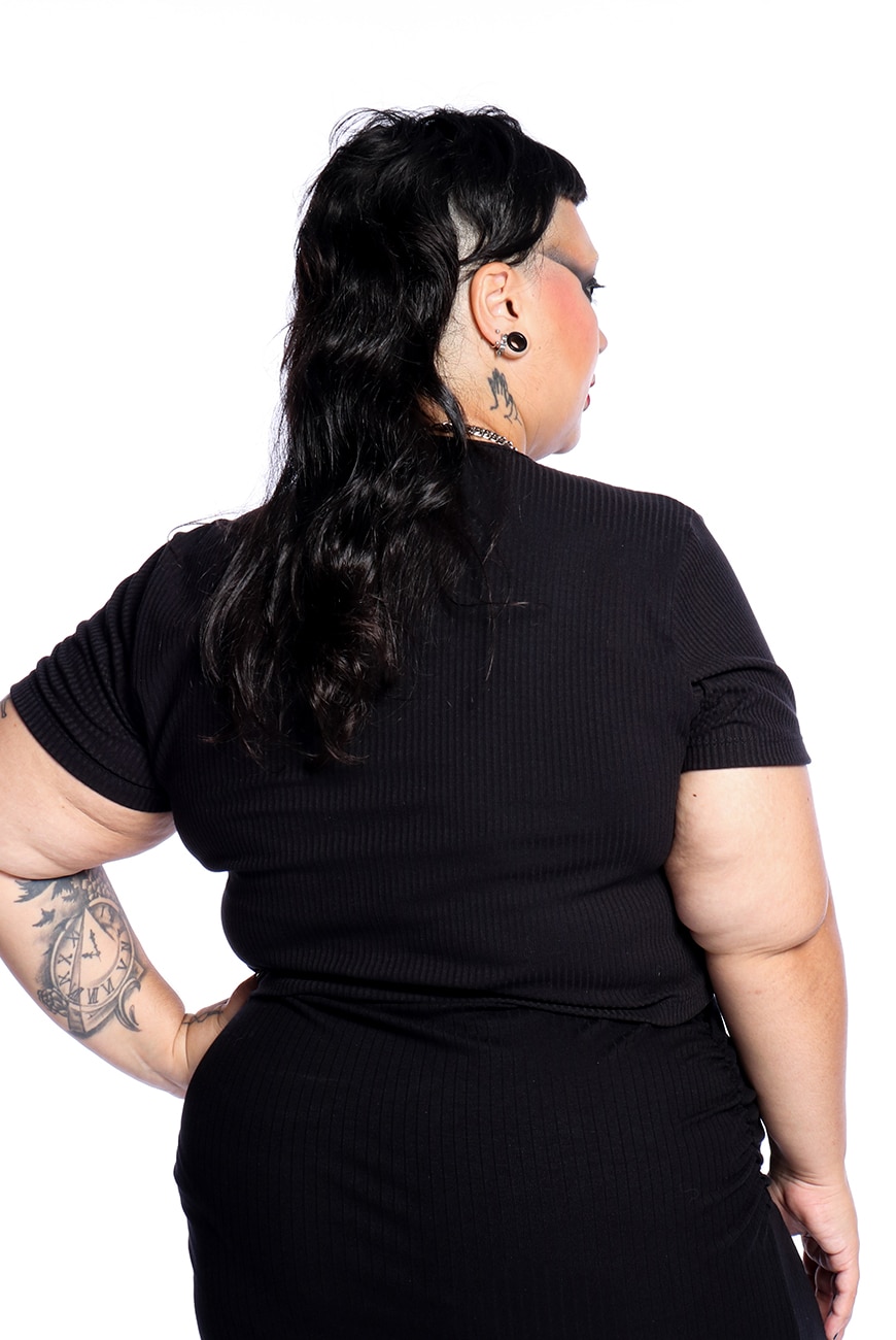 O Cropped Ajustável Adaga é produzido em malha canelada de alta qualidade, trazendo conforto e caimento mais justo.
