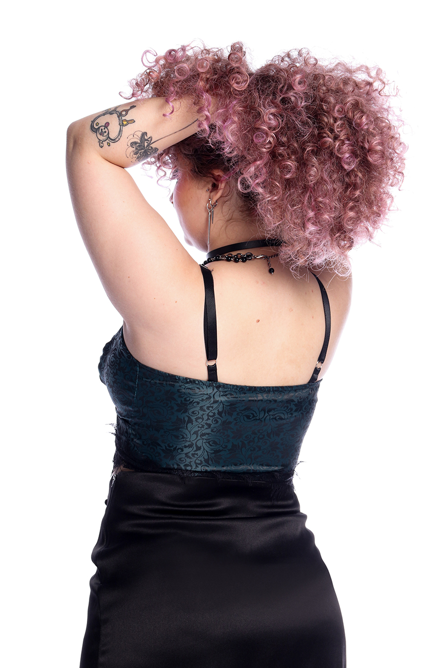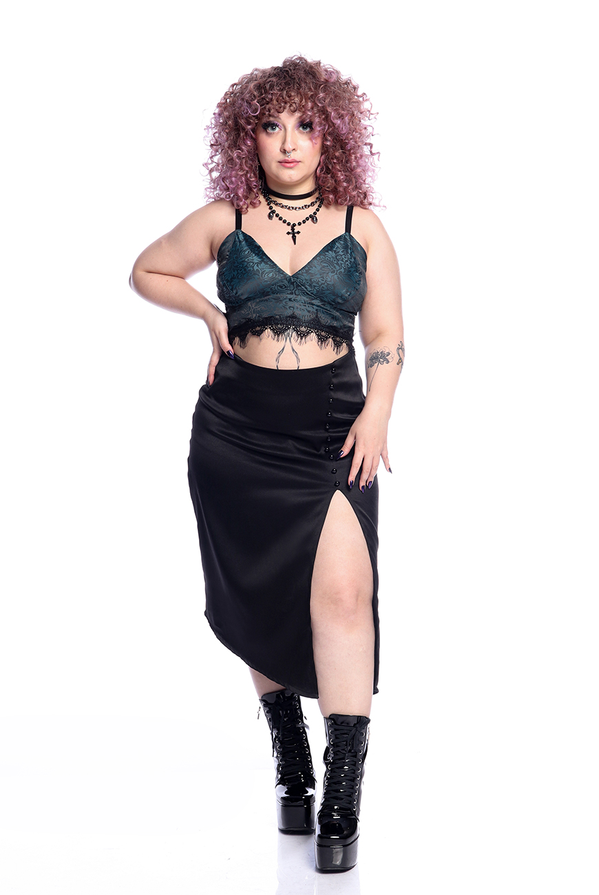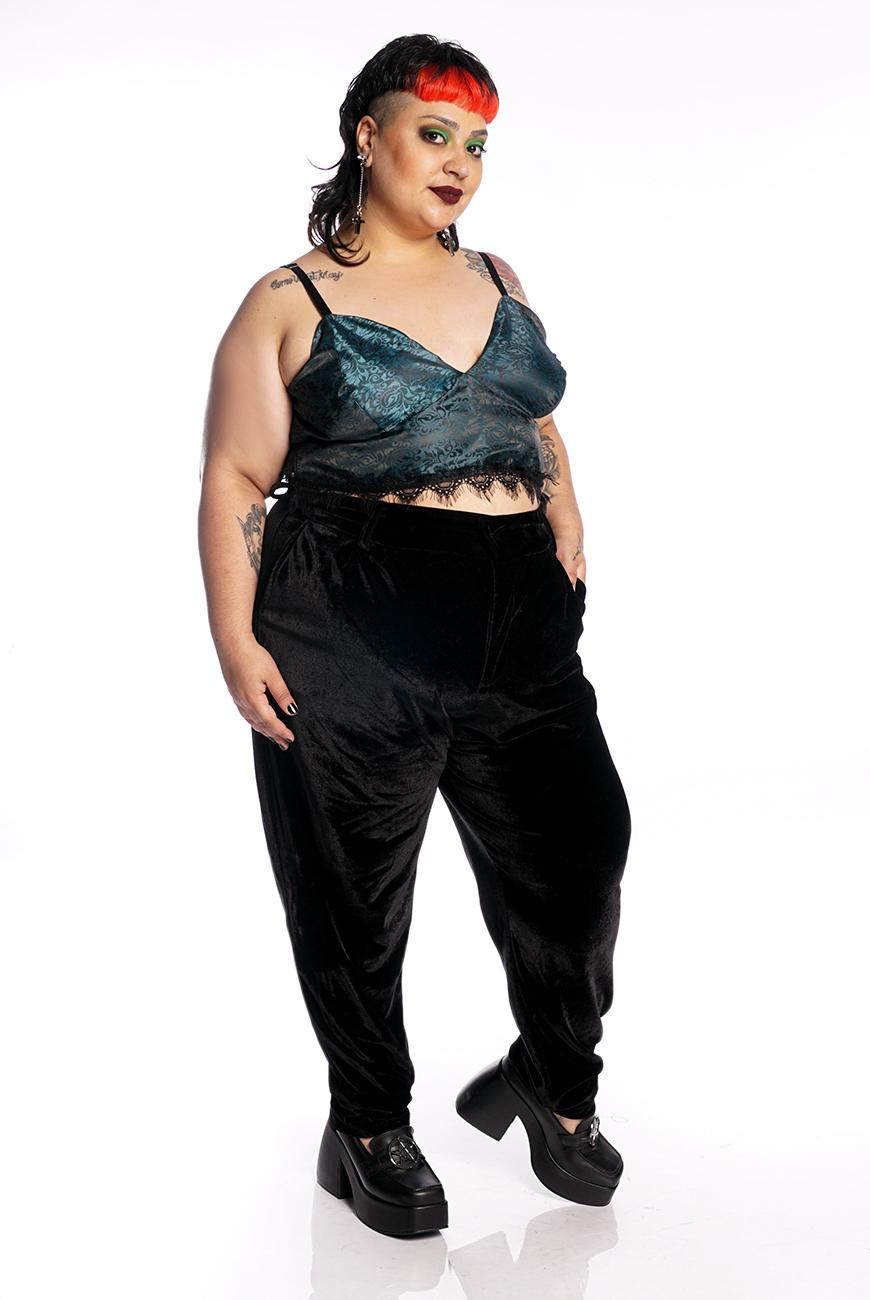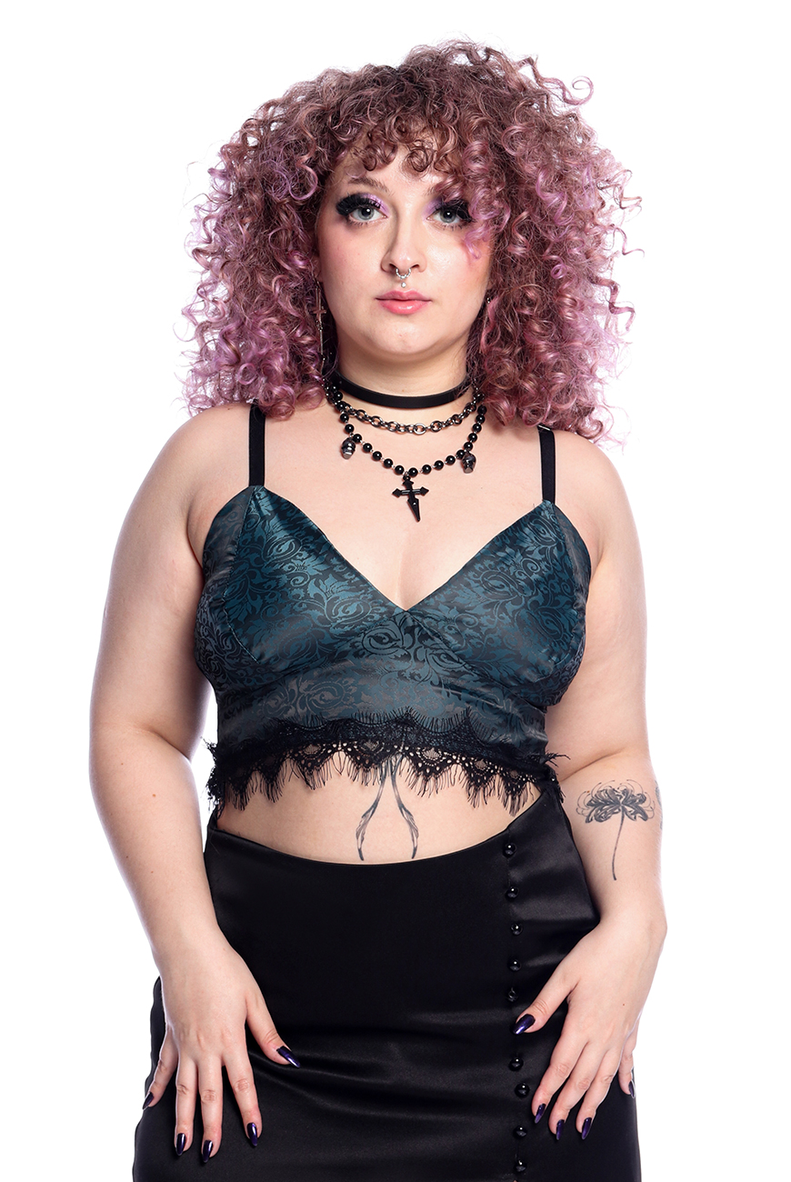 O Cropped Renda Serpentine foi desenvolvido em um tecido leve com toque acetinado e arabescos incríveis, que combinados com a renda preta na barra trazem um ar super romântico e charmoso para a peça. Seu fechamento é por zíper na lateral, com alças reguláveis para melhor ajuste.