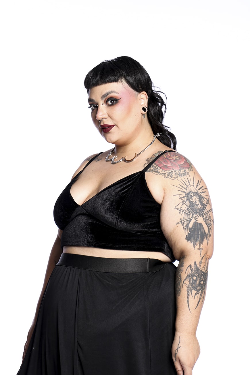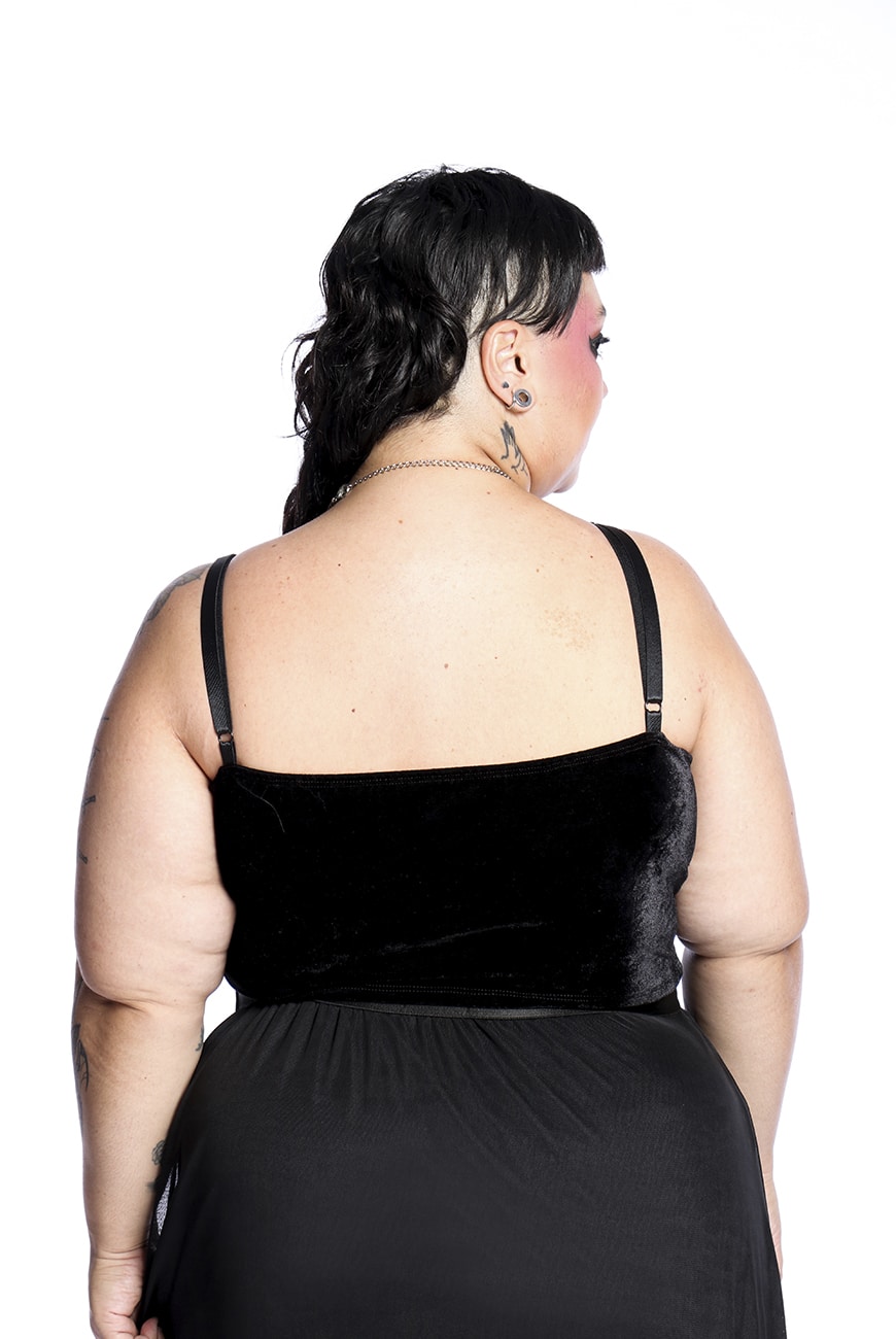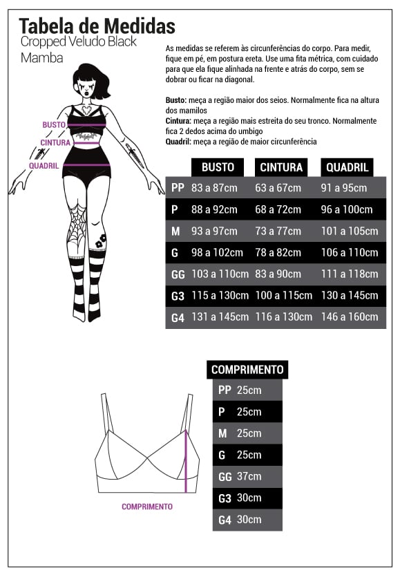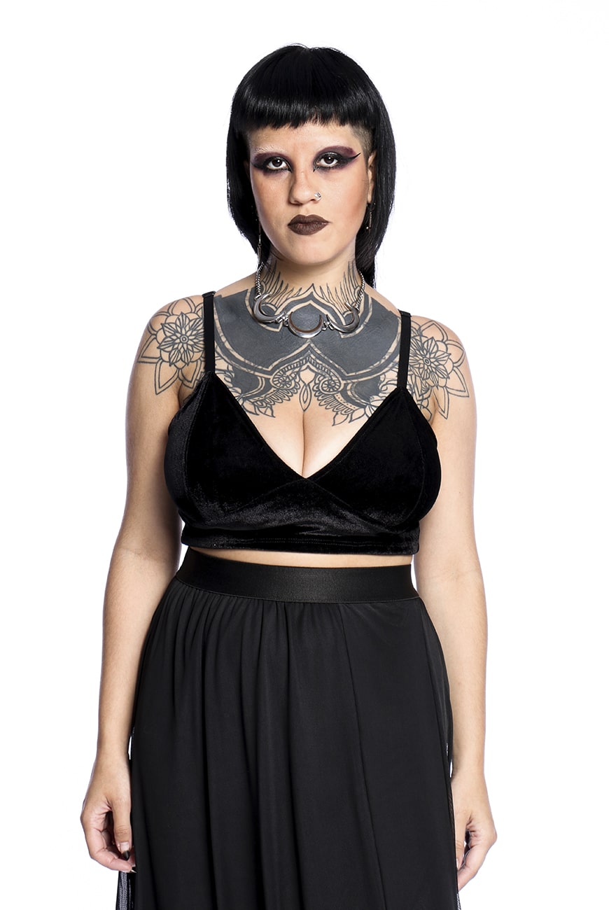 O Cropped Veludo Black Mamba foi desenvolvido em veludo preto com toque macio, se ajustando super bem ao corpo. O decote profundo valoriza bastante o busto, compondo super bem com chokers e colares mais compridos. Também conta com forro e alças reguláveis para melhor ajuste e conforto.