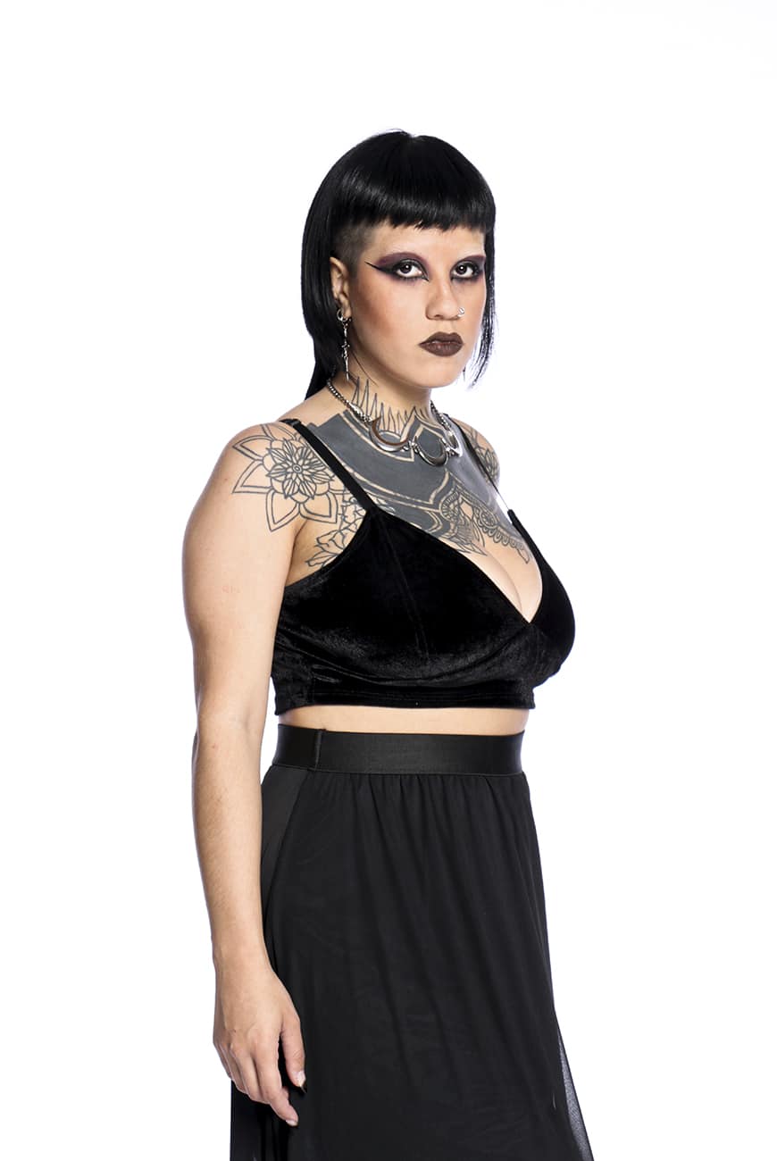 Dica de look: Em dias mais quentes, use com a Saia Longa Tule Espectral e Sandália Birken Spikes Thorns; Para looks com sobreposição, use com a Blusa Manga Longa Shadow Renda, Legging Cintura Alta Velour e Bota Coturno Black Lady.