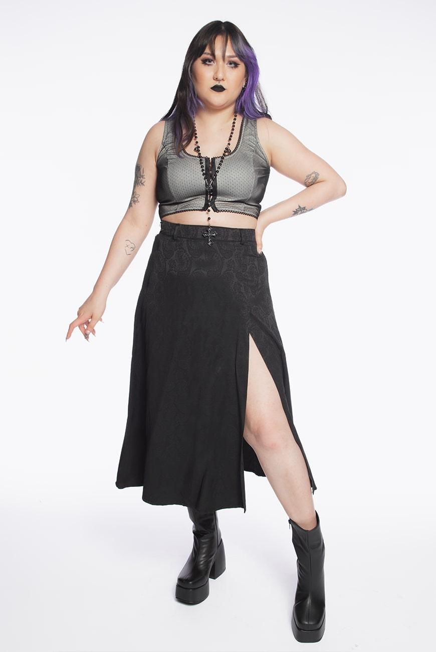 Dica de look: Compõe super bem com a Saia Aura Noir, Choker Christina Death e Bota Meia Pata Wolfskin.
