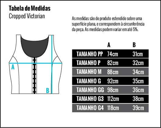 Super confortável, possui recortes que ajustam melhor a peça no corpo, valorizando a silhueta. Possui fechamento por fita de colchetes na parte frontal.
