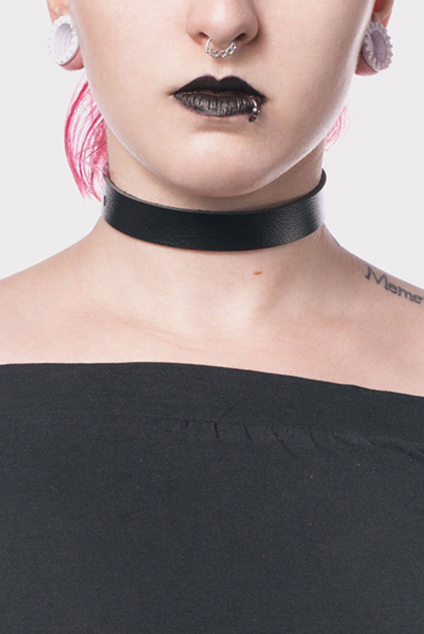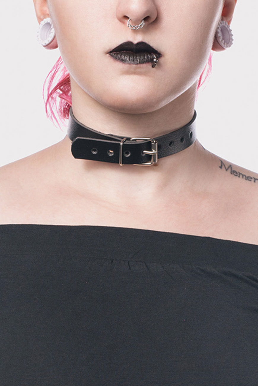 Gargantilha grossa de tira simples em material alternativo de origem não animal com fecho de fivela. Possui 48cm de comprimento x 2cm de largura.Feita no Brasil.