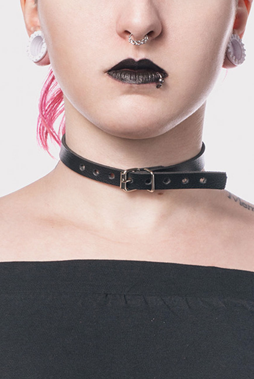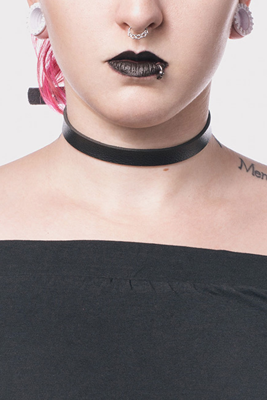 Gargantilha média de tira simples em material alternativo de origem não animal com fecho de fivela. Possui 48cm de comprimento x 1,5cm de largura. Feita no Brasil.