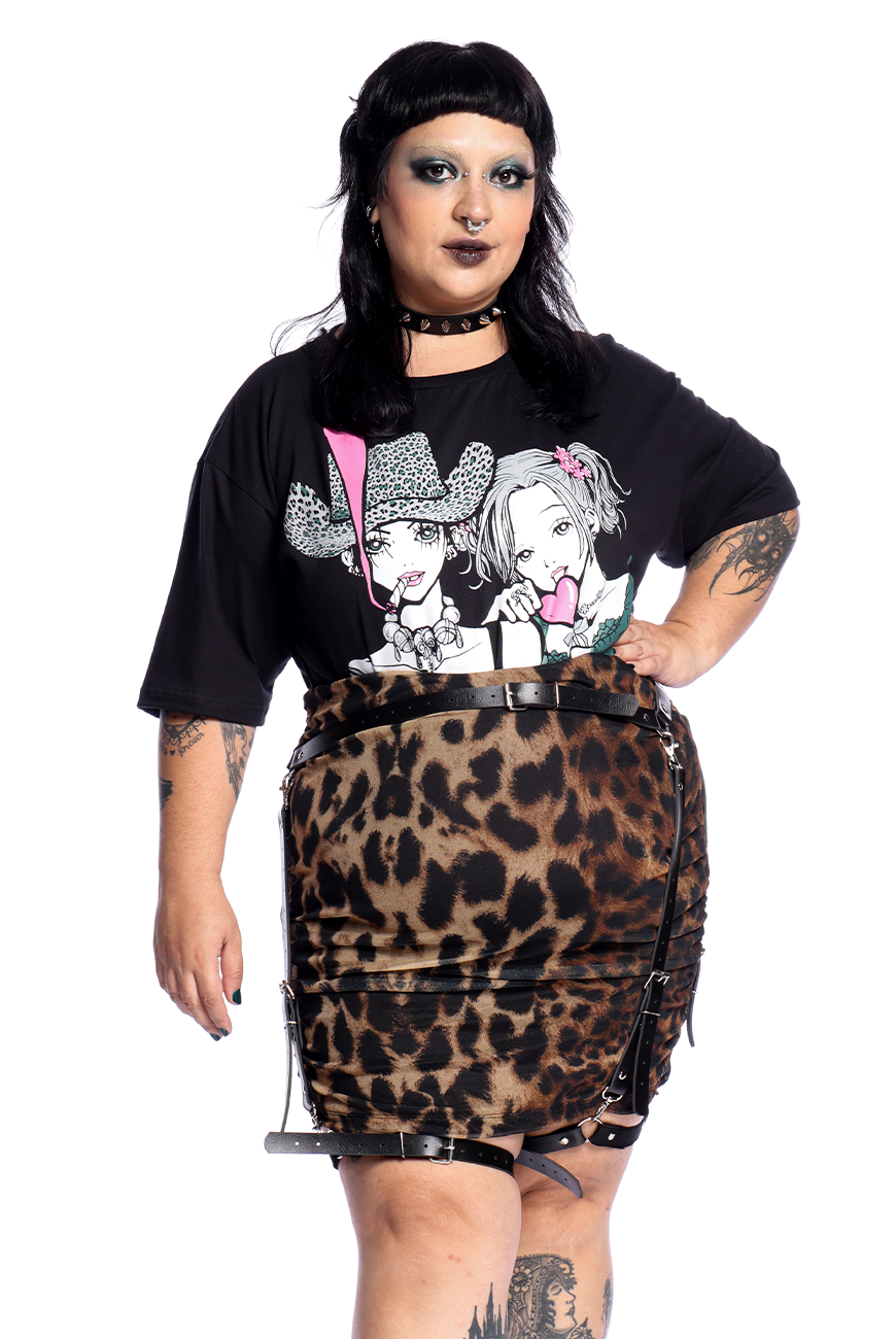 Produzido em tiras de couro sintético, é um cinto estilo garter completamente regulável, possui fivelas nas tiras da cintura, quadris e coxas, sendo super adaptável para diferentes corpos.