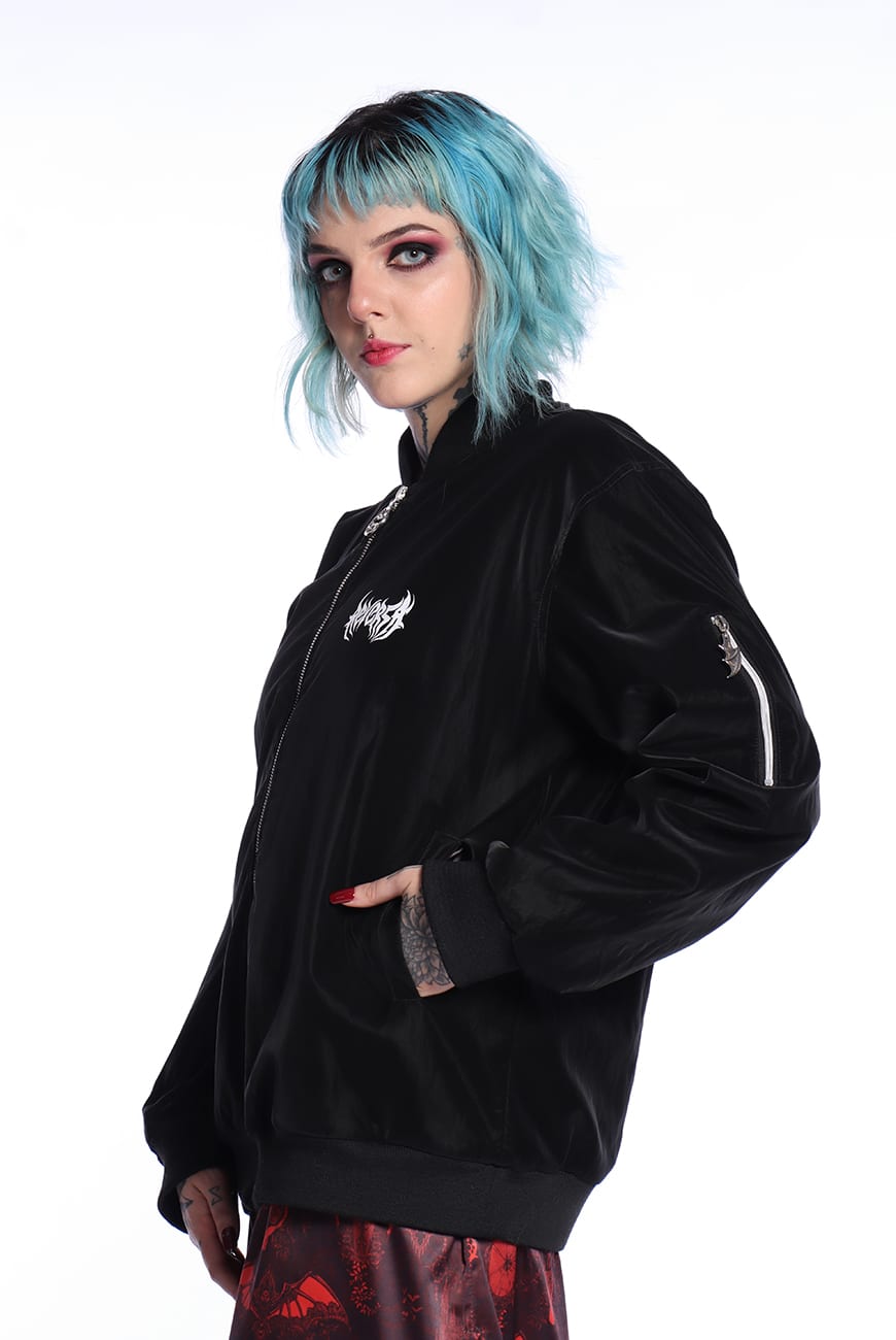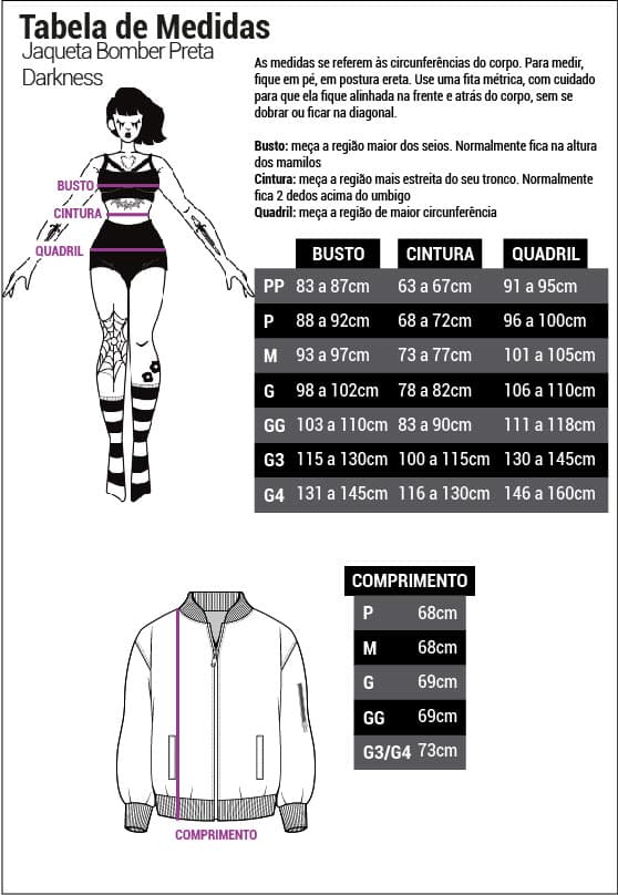 Cuidado trevosa, a Jaqueta Bomber Preta Darkness é uma peça super exclusiva com qualidade e acabamento impecáveis, podendo causar uma vontade incontrolável de usar TODOS os dias!!!!