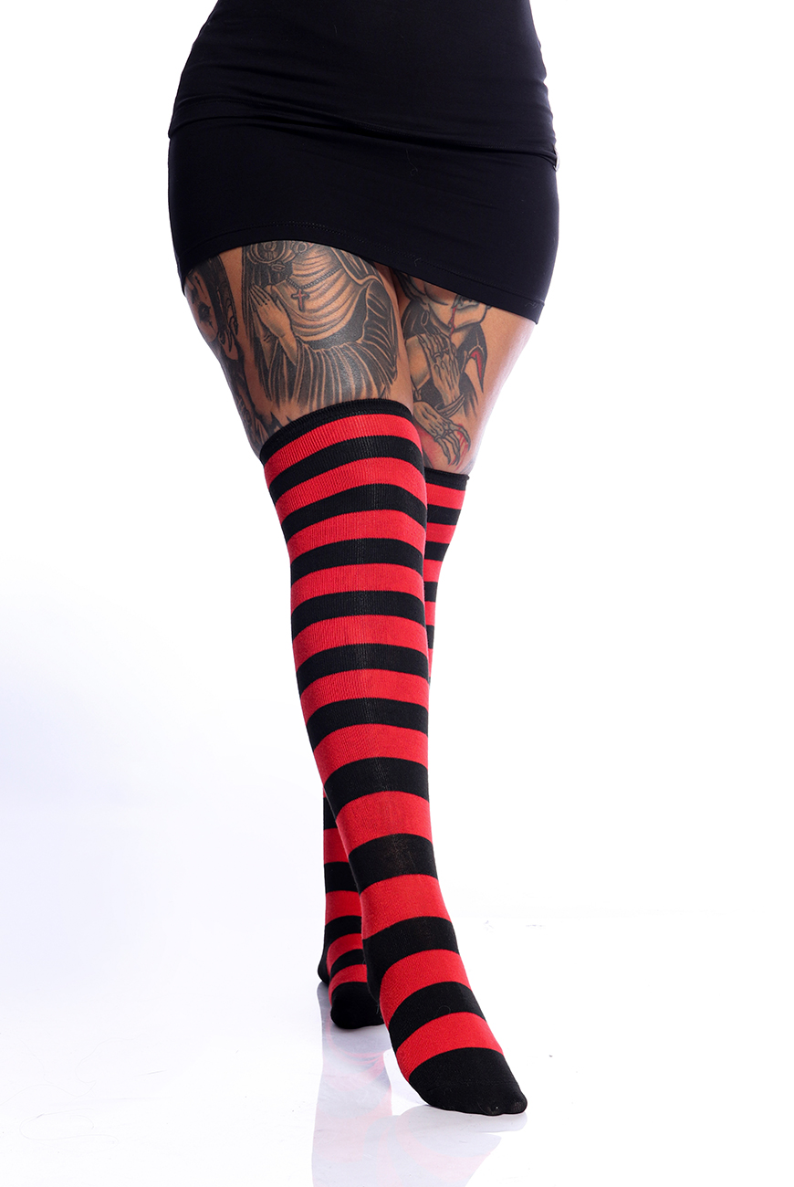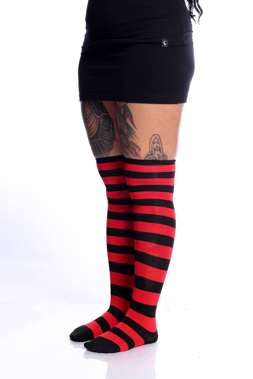 Meia 5/8 Listrada Preta e Vermelha
