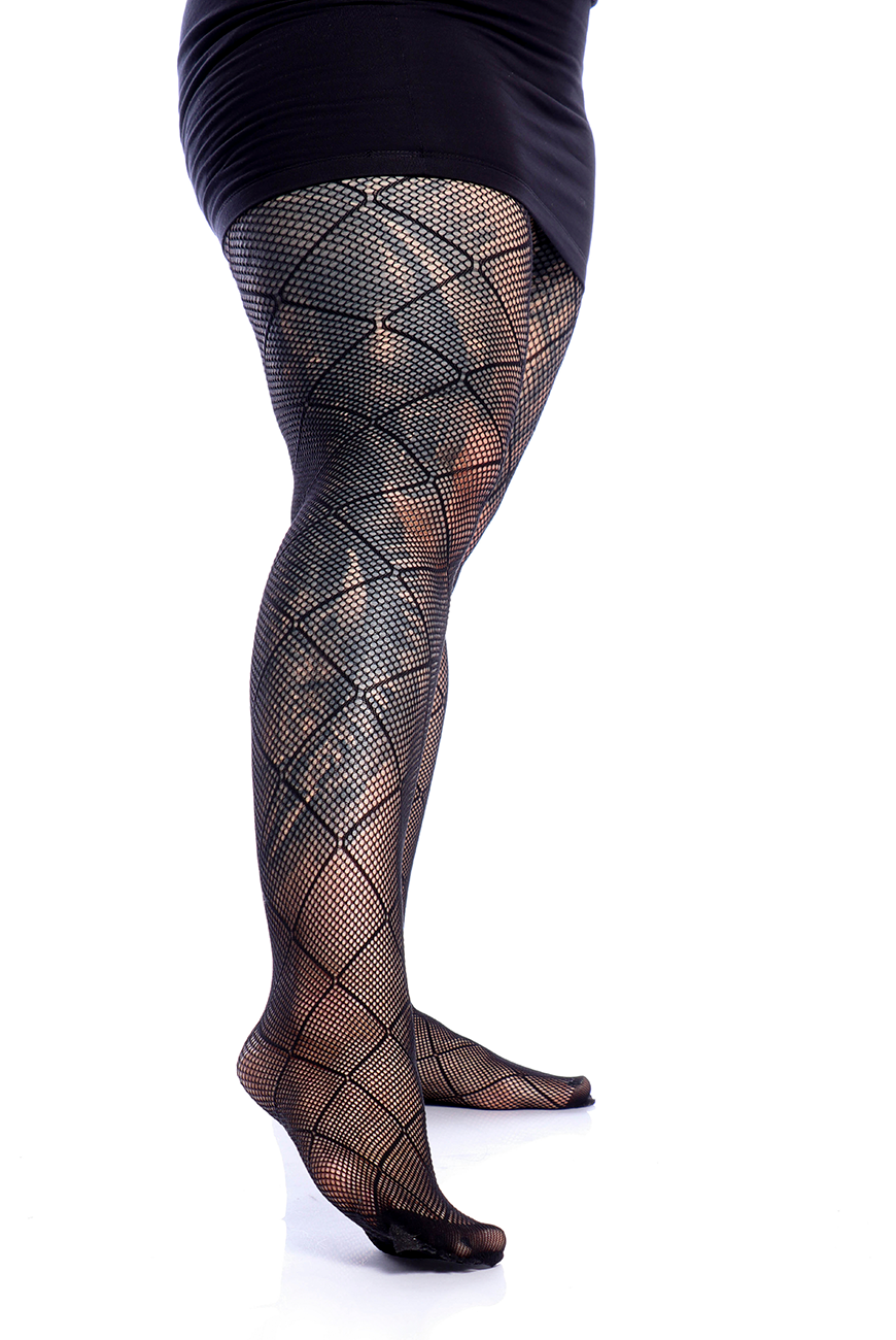 Meia calça arrastão com padronagem de losangos traz muito estilo e levanta qualquer look!