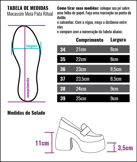 Altura do solado: Possui 3,5cm na frente e 11cm de salto.