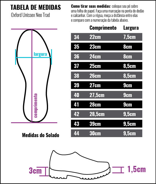 Altura do solado: 3cm.