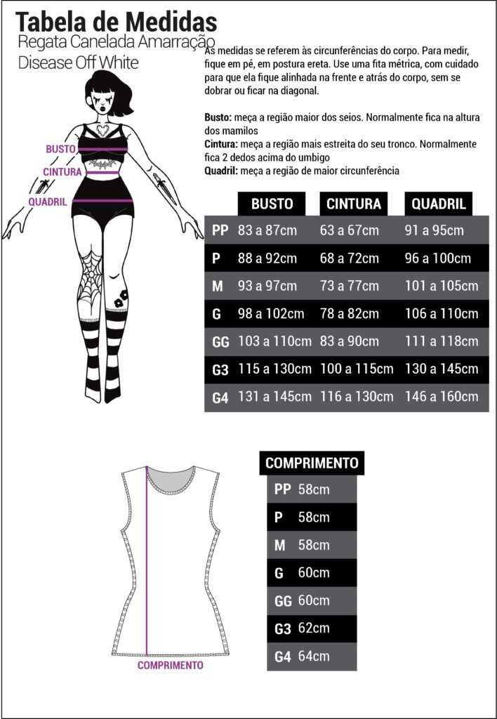 Modelo tamanho G3: Altura: 1,60m/ Cintura: 96cm/ Busto:116cm/ Quadril: 131cm.