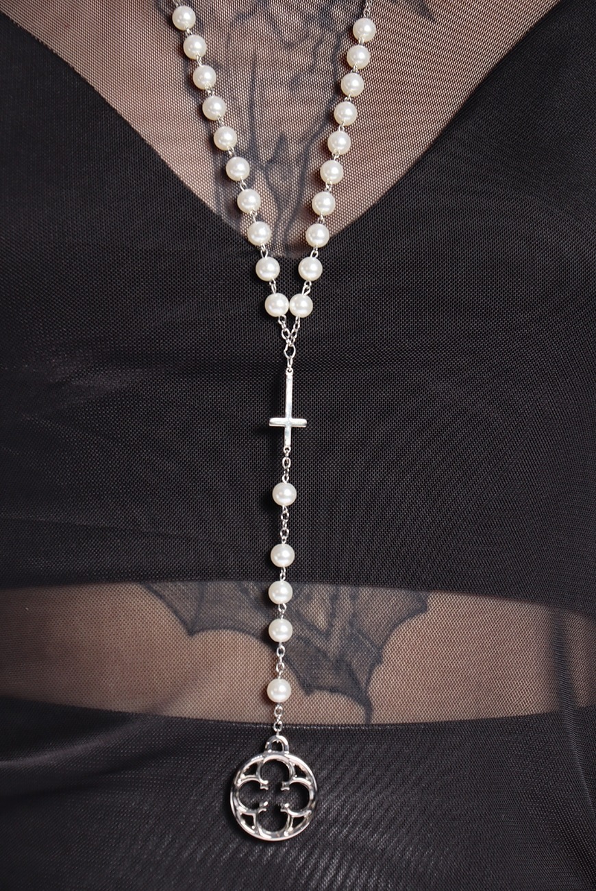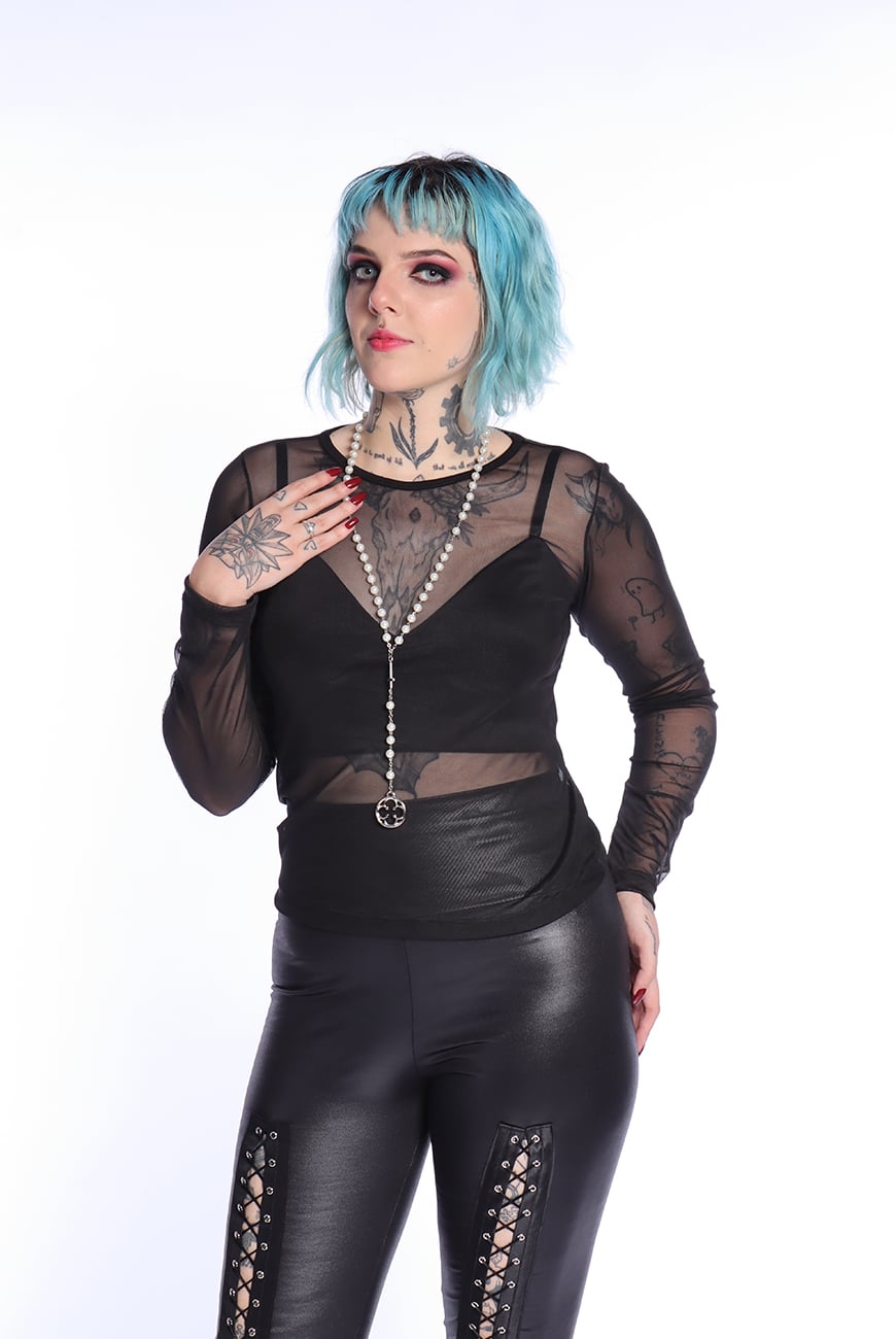Possui entremeio de cruz invertida e o nosso novo pingente exclusivo inspirado nas rosáceas de catedrais, trazendo esse tema vampiresco que a gente adora. Fica incrível compondo com vestidos como o Vestido Tule Sweet Claudia, ainda mais se você usar a palavra BRUXONA quando finalizar sua comprinha.