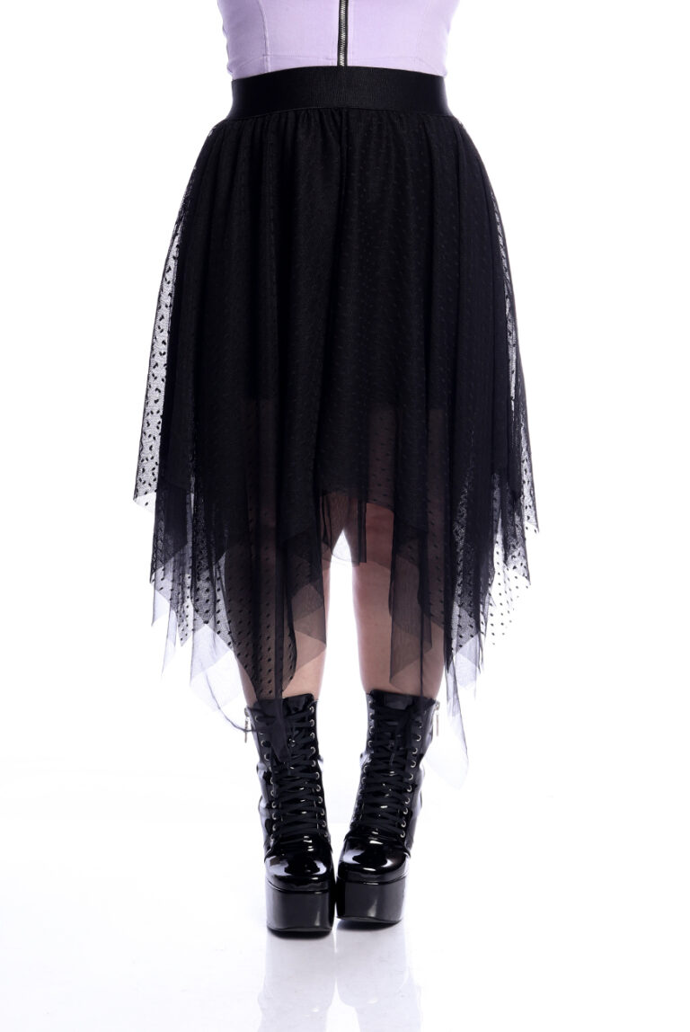 - Bruxa Elegante: Combine um vestido preto longo, justo como o vestido Hannya ou esvoaçante em tule como o Neo Aconite, um chapéu fedora, pork pie ou floppy e uma maquiagem marcante. Saias longas também ficam muito boas. Acessórios de luas e pentagramas complementam perfeitamente.